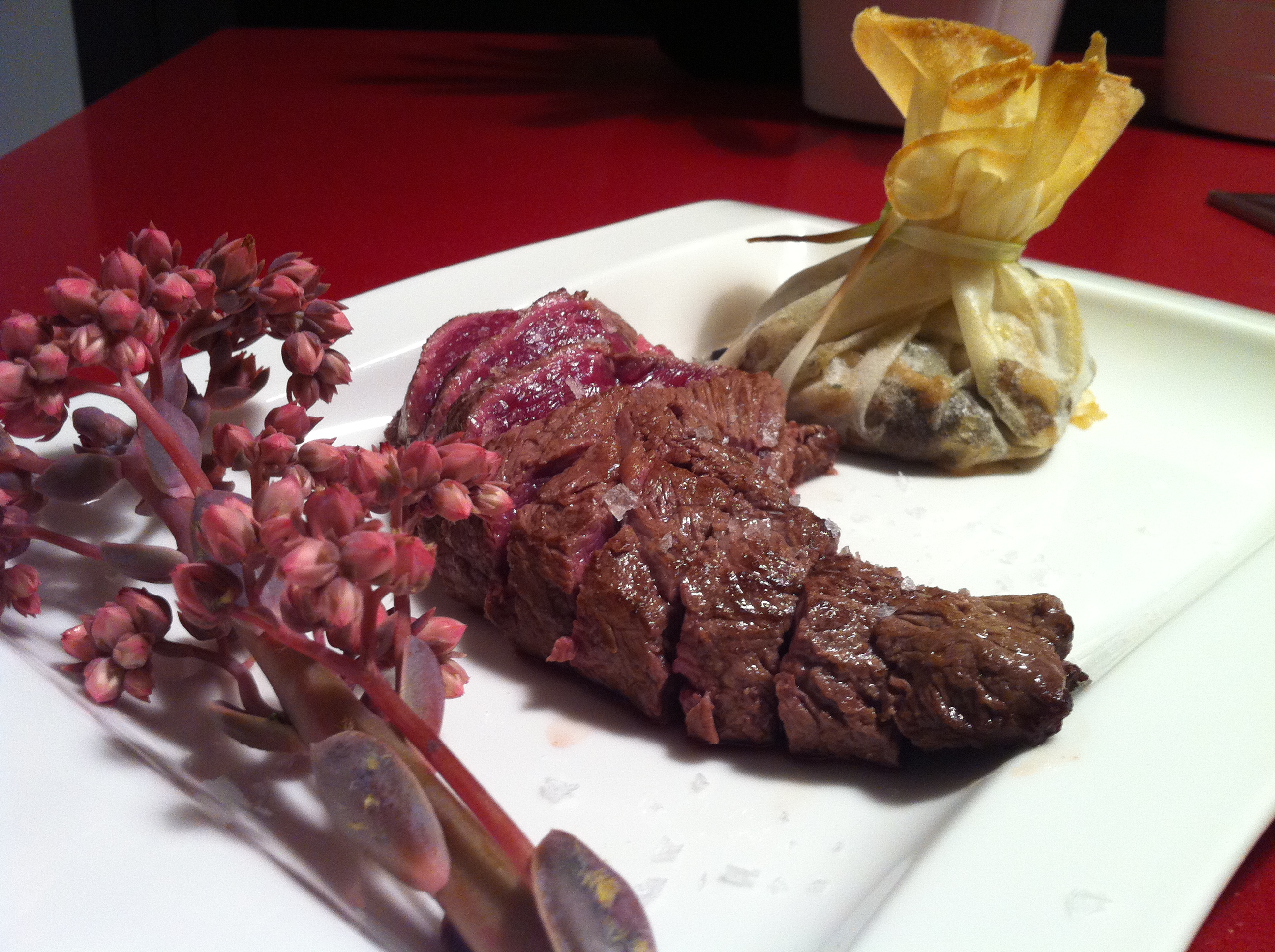 No os voy a explicar como hacer la carne pero si os ruego encarecidamente que atemperéis la pieza que vayáis a cocinar, a mi que me gusta tirando a cruda y no hay cosa mas desagradable que dar un mordisco y que este de nevera en su interior. La sal no es cuestión baladí por ello os recomiendo una de escamas o una volcánica de Hawaii.