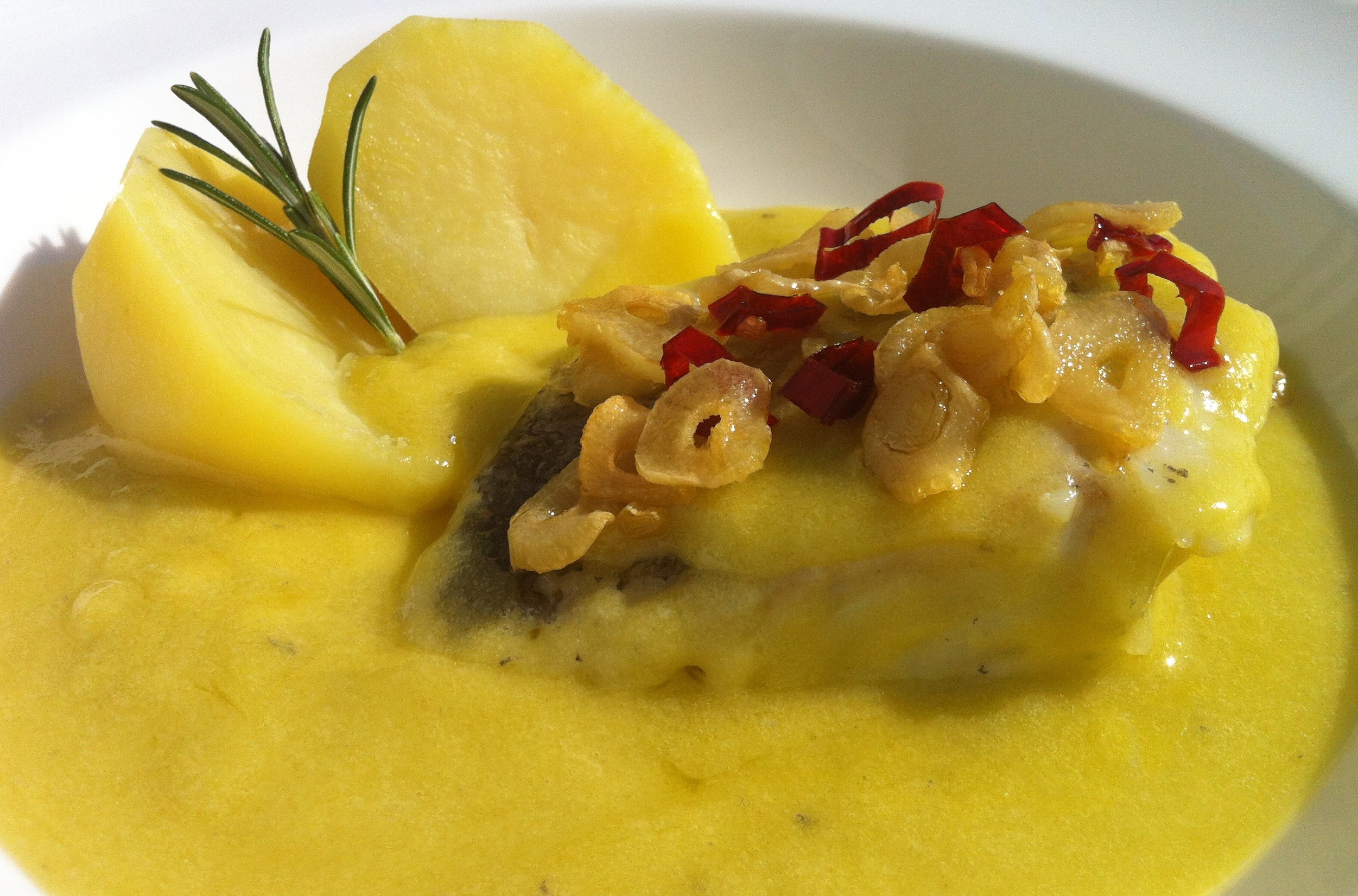 En el mismo aceite y continuando con una temperatura baja pasamos el lomo de bacalao un par de veces por la parte de la piel como si estuviésemos barriendo el fondo, lo posamos con la piel hacia abajo y agitamos leve pero continuadamente durante 3-4 minutos más o menos antes de darle la vuelta, seguimos con el agite y veremos como poco a poco irá soltando la gelatina, fácilmente perceptible ya que son unas bolitas blancas que emergen del fondo y que hacen un sonido pil pil, de ahí su nombre. Vais por buen camino, no cejéis en el intento, la muñeca duele pero recordar que la clave de este plato es su continuo movimiento y resulta muy emocionante ver como cada vez la crema amarillenta predomina, seguimos hasta que todo el fondo sea una cremosa salsa sin atisbo de aceite. Bravo!!! lo habéis conseguido, la salsa está perfectamente emulsionada.