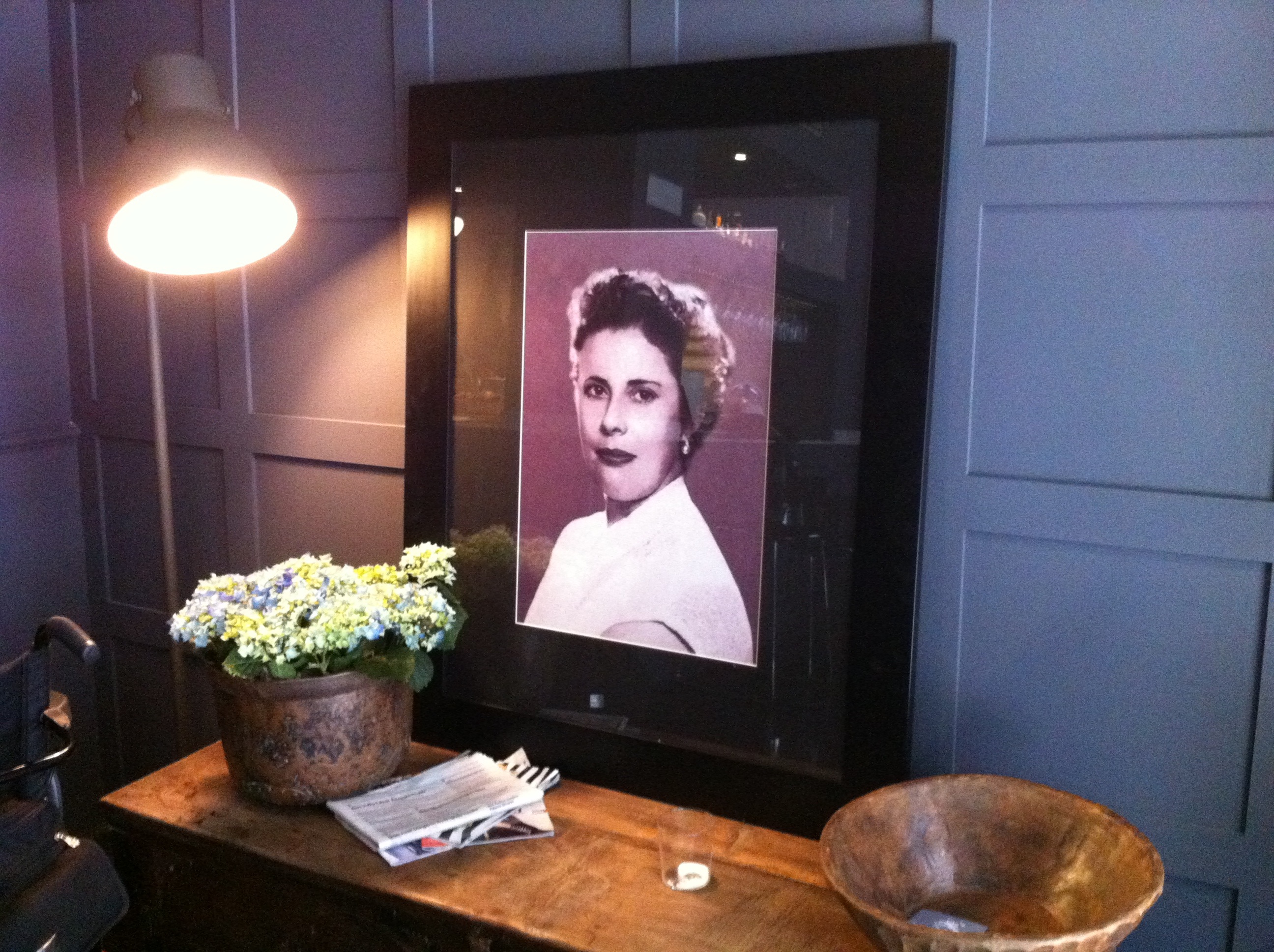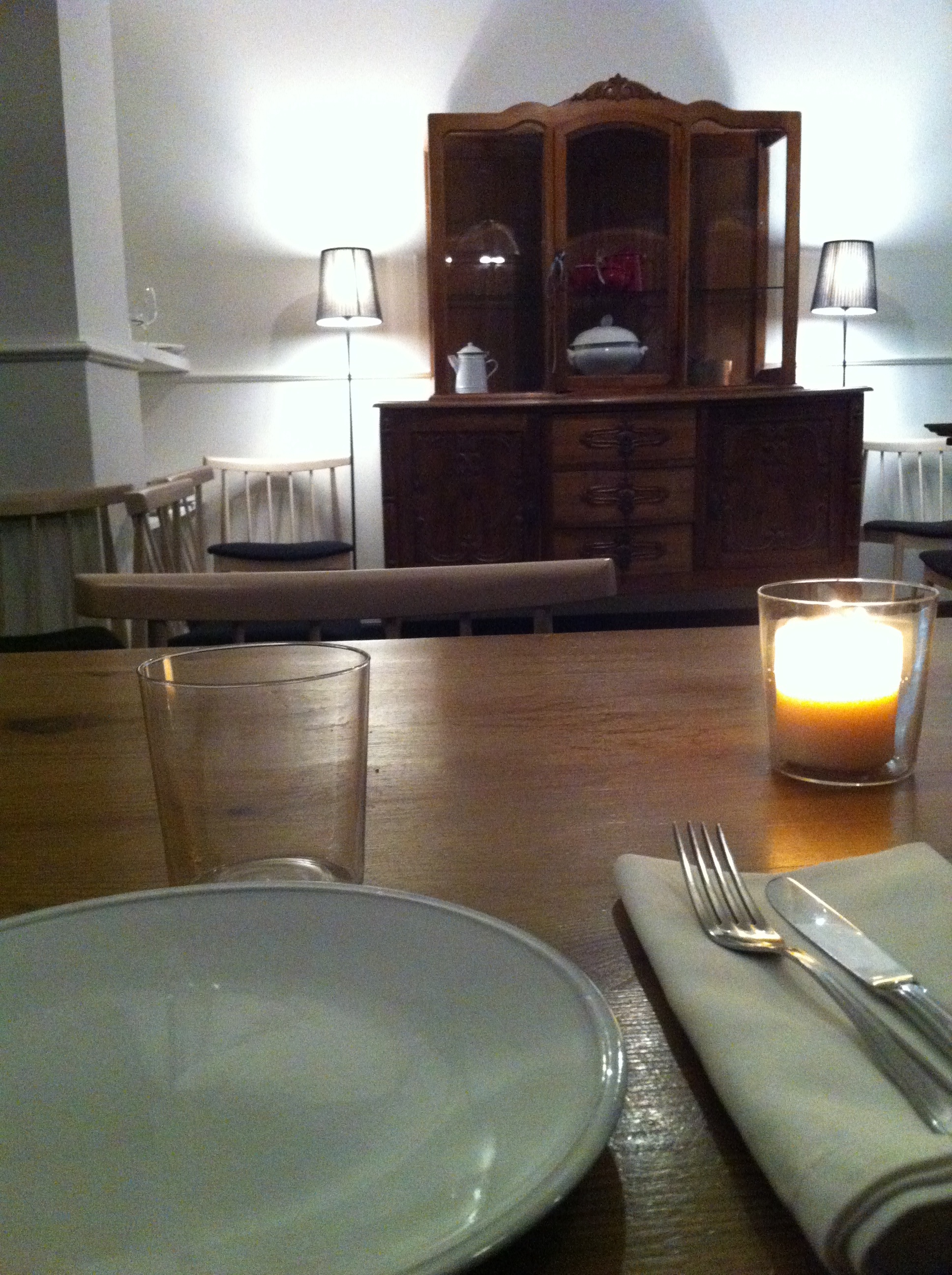 El local de la calle Cervantes, 24 ya lo conocía pues había estado en los restaurantes que antes se ubicaron allí. La geometría sigue siendo la misma pero la decoración que preside desde la entrada el retrato de Gloria es muy acogedora, luminosidad adecuada para dar ese toque de intimidad pero suficiente para ver lo que comes aunque en mi caso insuficiente si lo que quieres es hacer buenas fotografías por las que de antemano pido disculpas.