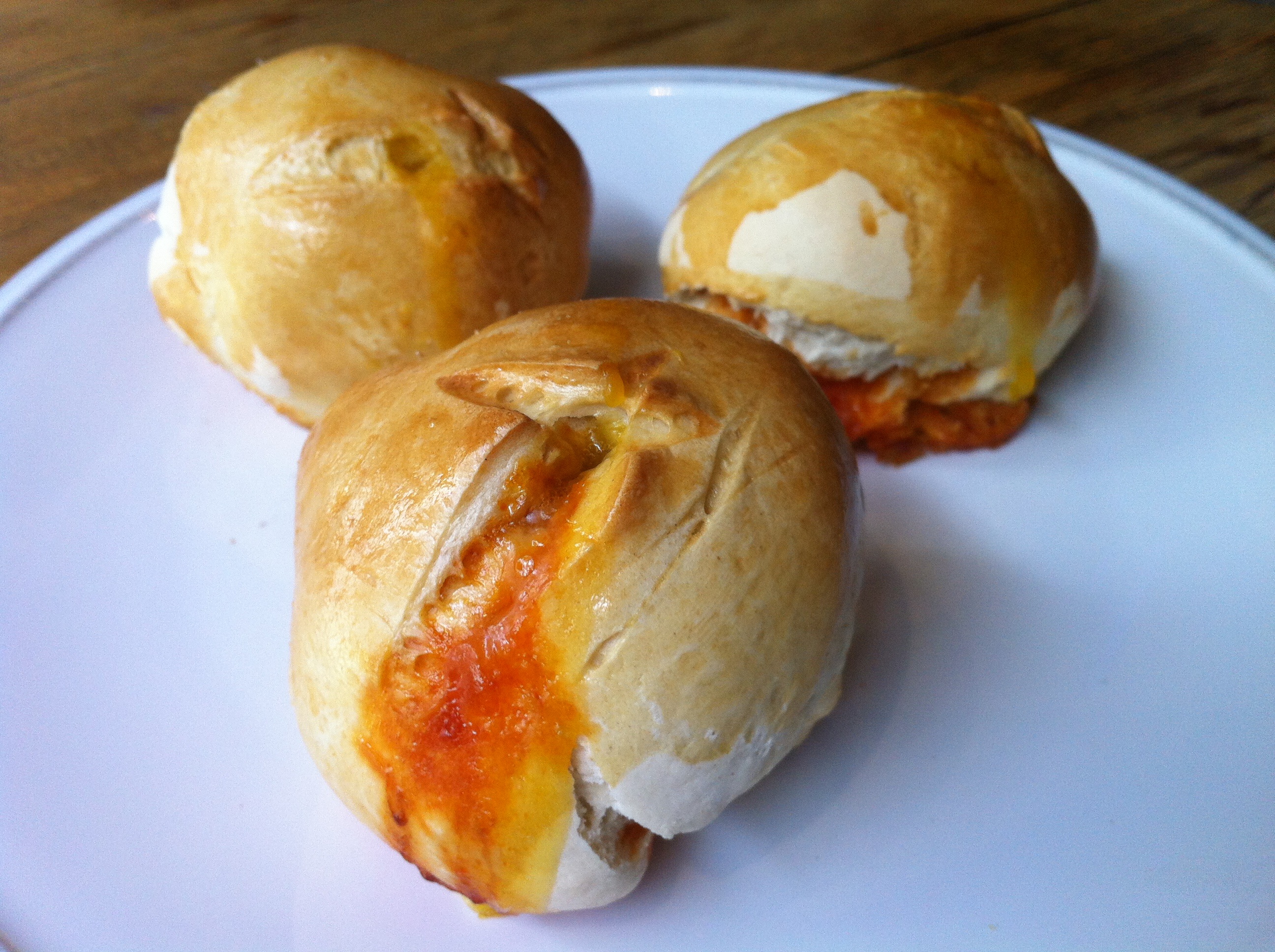 El clásico bollín preñao recién horneado que lleva inyectado huevo, un entrante que entra solo.