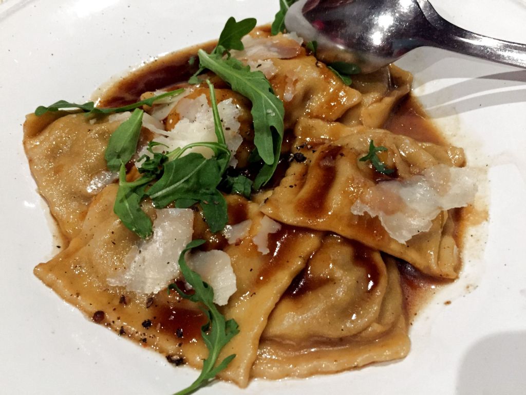 Los raviolis caseros de hongos, jugo de carne trufado y parmesano están para comerse una docena.