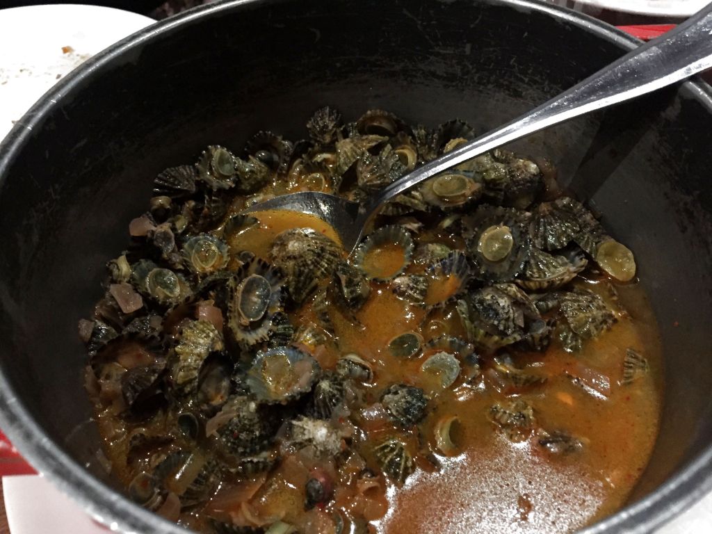 Aunque parezca mentira, en esta cena ha sido la primera vez en mi vida que probara las llamparas a la sidra. Un plato que sorprendió a los gallegos, tan habituados al marisco, pero que este molusco obvian por completo en su gastronomía. Deliciosas.
