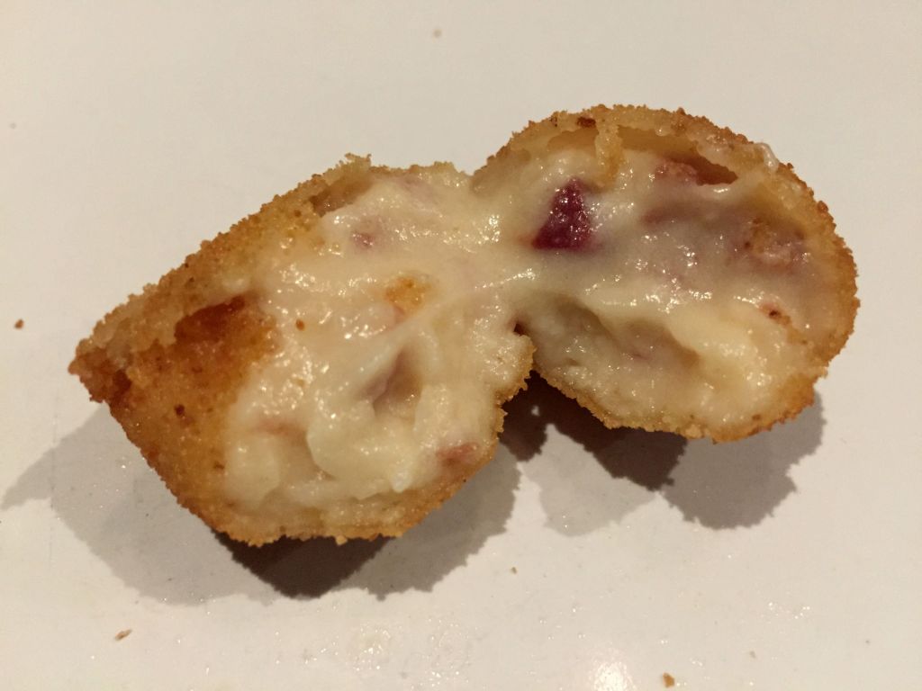 Las croquetas estan muy ricas, una bechamel muy suave, se deshacen en la boca y no me extraña que los críticos las alaben.