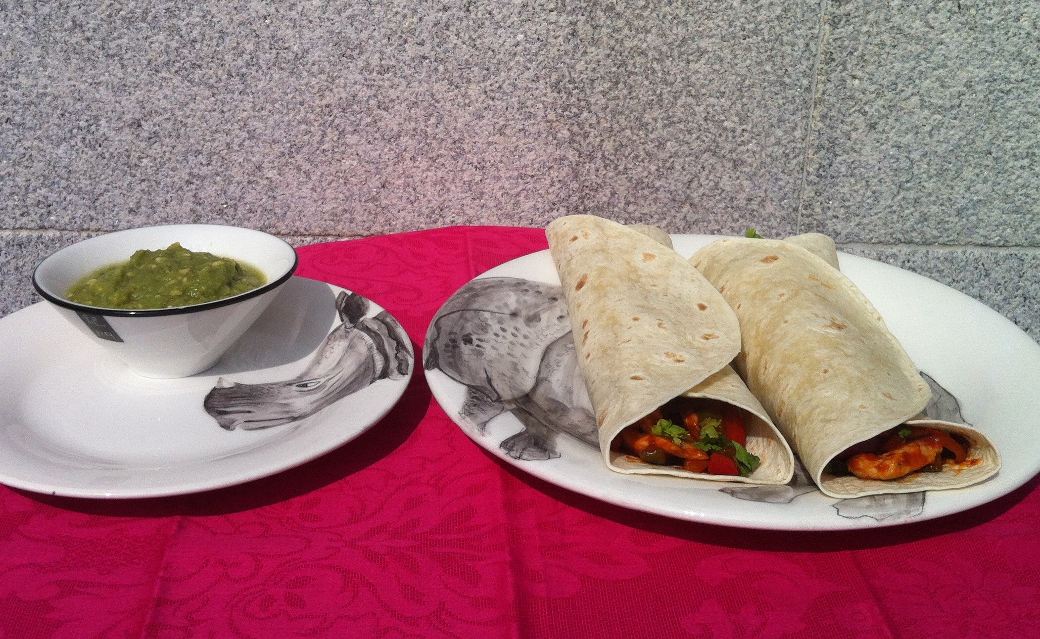 Hoy he preparado unas fajitas de pollo para poder dar salida a una cantidad ingente de guacamole y cada vez que las hago más me gustan, debe ser porque me gusta comer con las manos, aflorar mis instintos más primarios y en definitiva disfrutar.