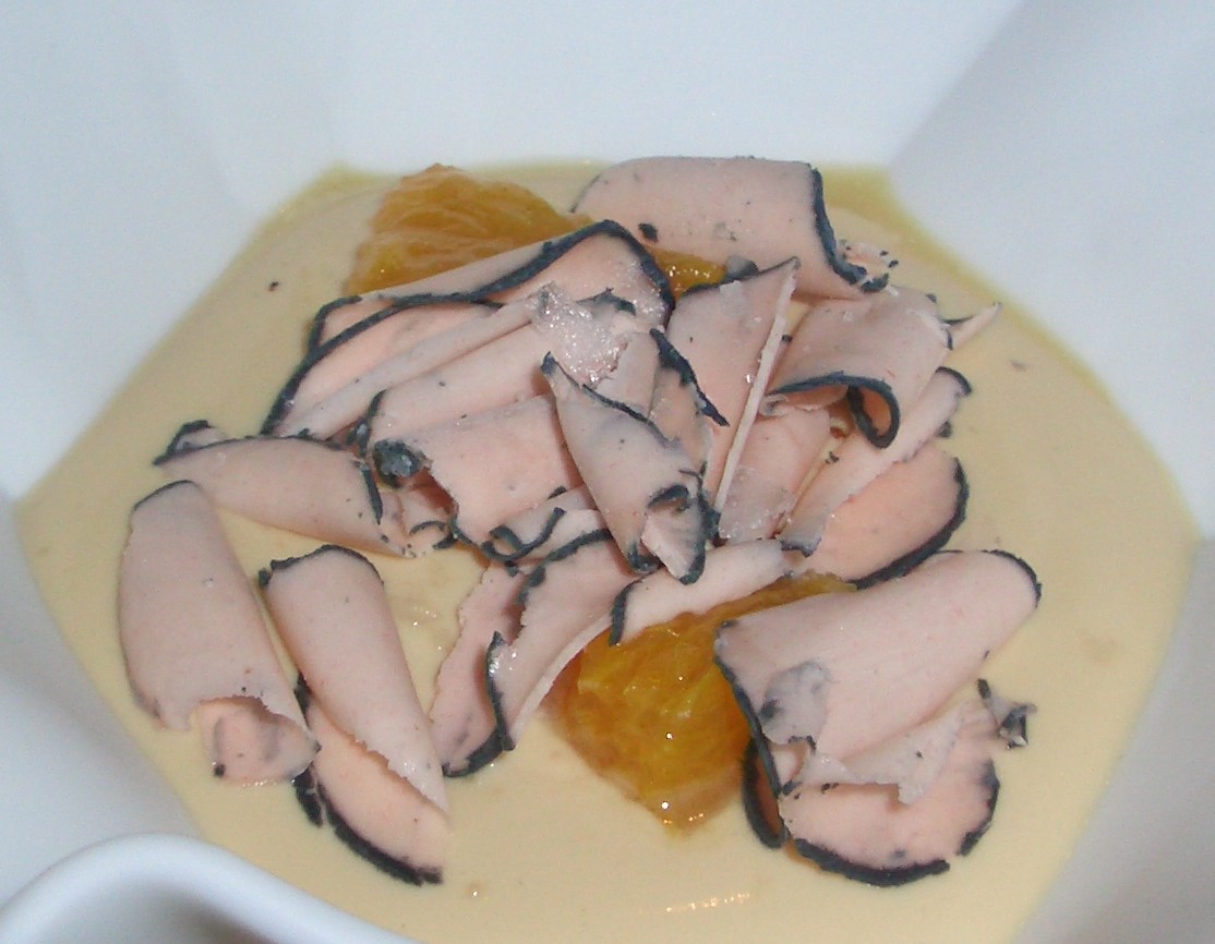 Afilando el lápiz es el siguiente plato en el que destacan las láminas de foie y la naranja.