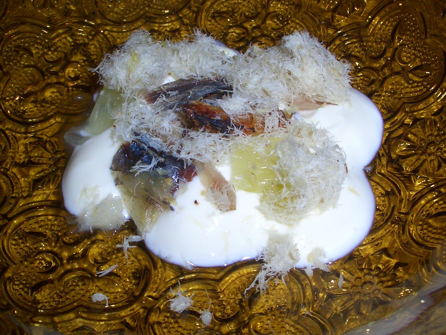 Esta parte la tengo algo confusa porque no me cuadran los nombres y me falta un plato del menú escrito o quizás era servido en dos partes.