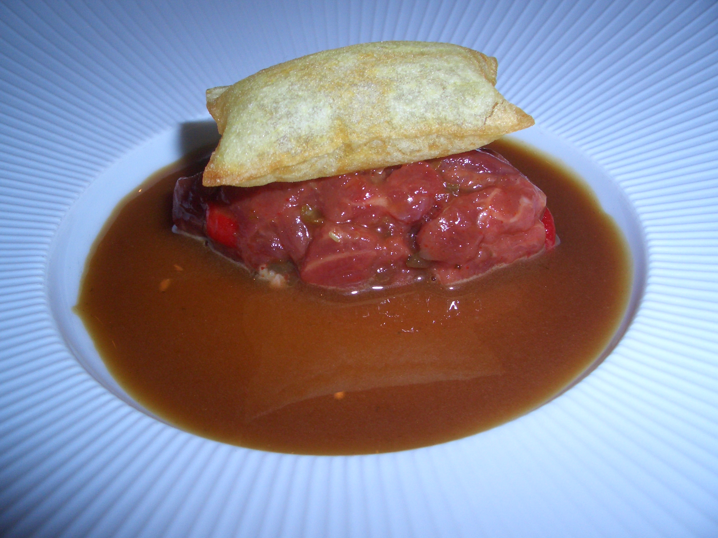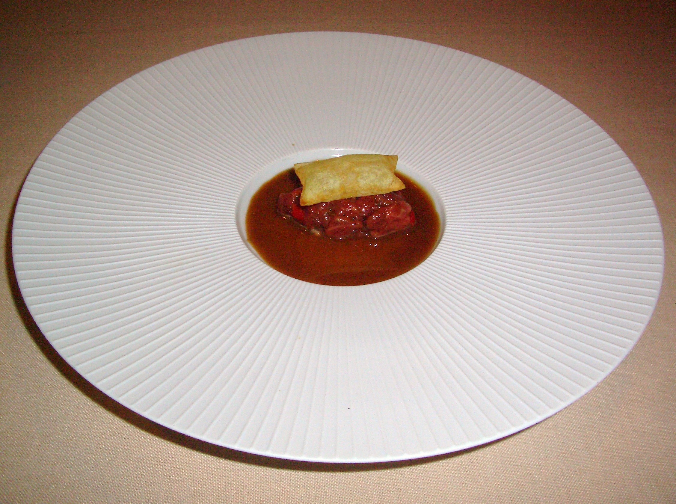 Ya vamos por los platos fuertes así que toca un tartaranimal-vegetal-marino, precisa combinación.