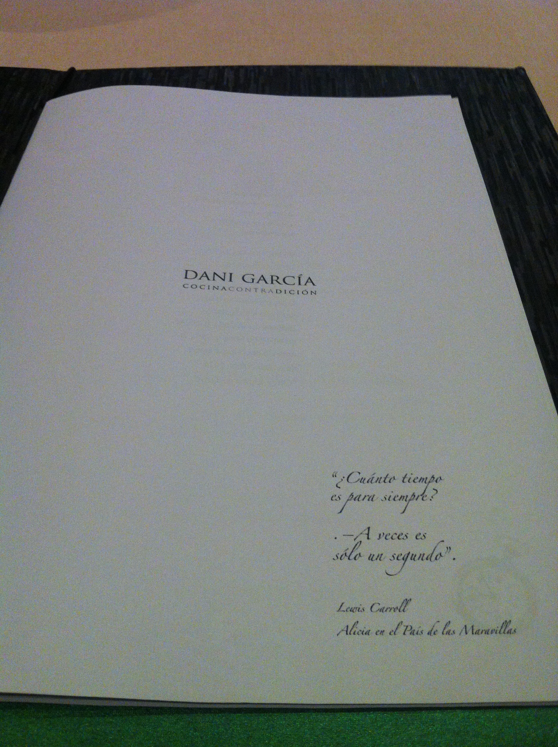 El reloj marcaba la una, había ido de procesión el jueves y me había quedado para disfrutar de la madrugá. Con gran pena pero igual ilusión con la que entré había concluido mi cuento, ese cuento que todos y cada uno de vosotros debería vivir en primera persona porque por más que os lo cuenten no os podéis imaginar que el restaurante de Dani García es un País de las Maravillas.