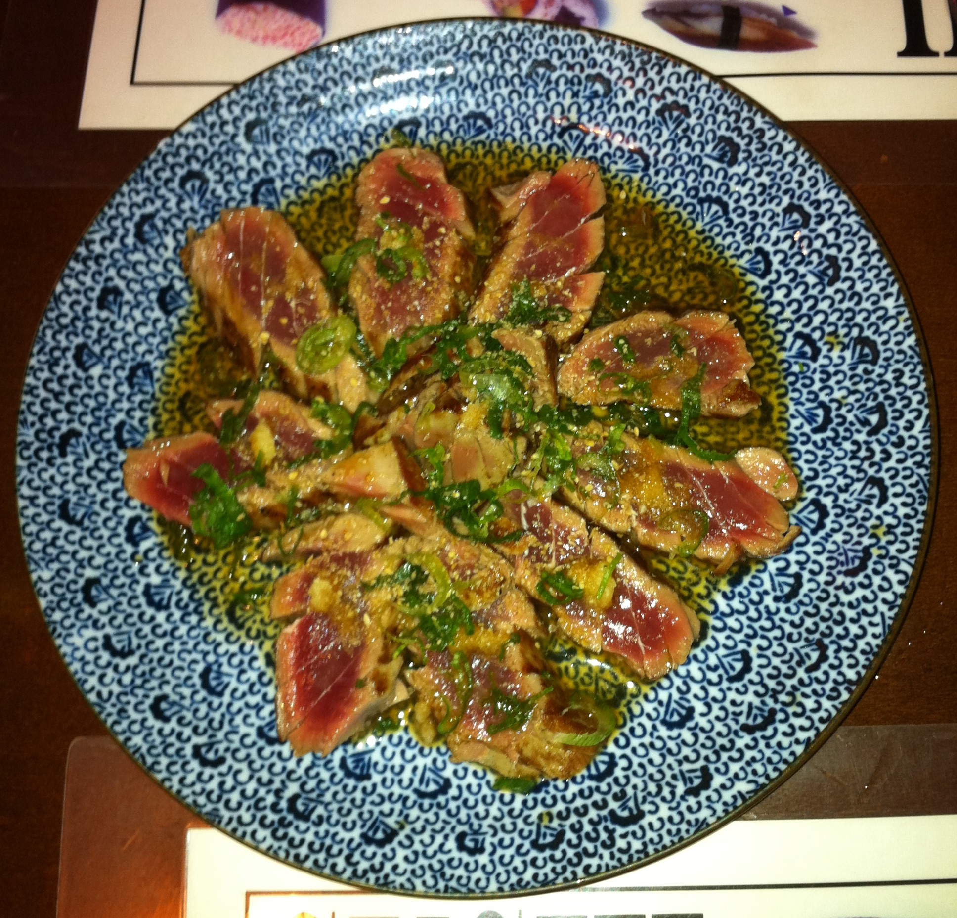 Con mi primera cerveza me sirvieron un aperitivo en forma de tataki de salmón, un primer bocado que hacía presagiar las buenas sensaciones que hasta el momento estaba teniendo.