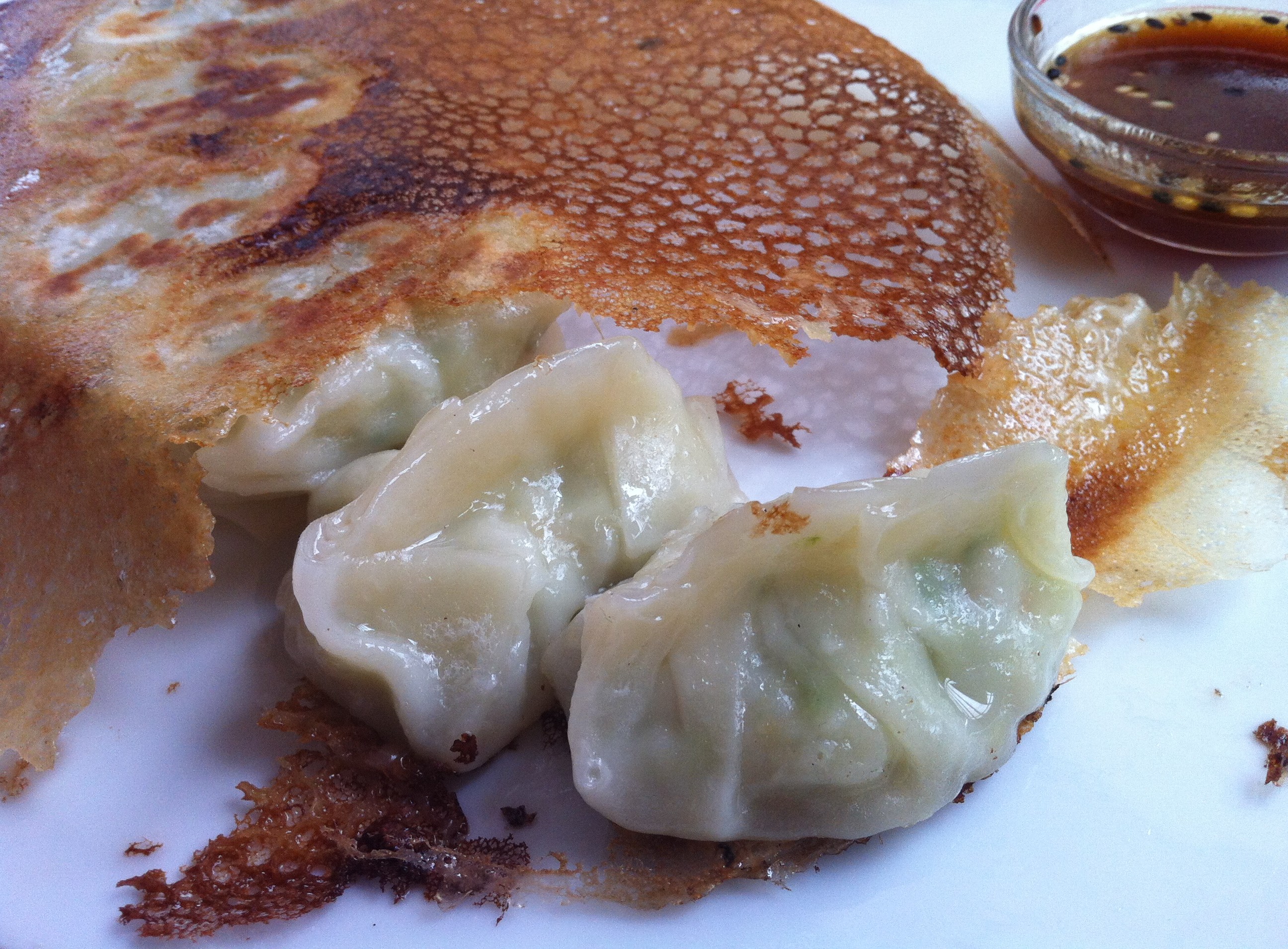 Nos acercamos al final y llegaron las sorprendentes niku-gyoza, la típica empanadilla japonesa de carne. Las había comido al vapor y fritas pero esta técnica no la conocía. Puestas en la sartén le echan una mezcla de harina japonesa y agua que es lo que crea esa costra crujiente, se sirve dándole la vuelta como si le diésemos la vuelta a una tortilla. Estaban superiores.