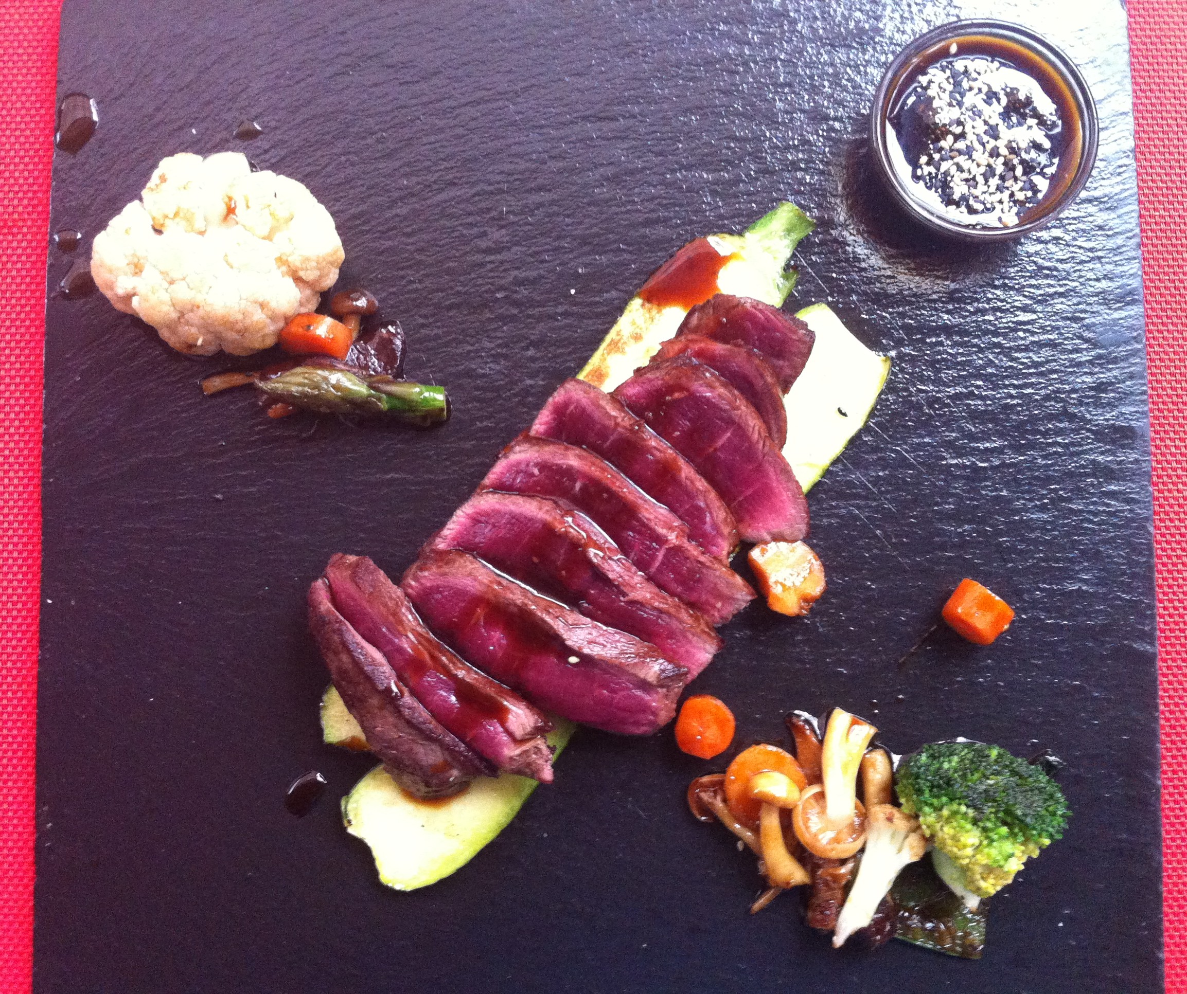 Terminé con un teppan yaki de solomillo de ternera y verduras con salsa teriyaki. Muy buena calidad en el solomillo y el punto poco hecho para mis gustos con la carne estaba perfecto así como el toque crunchy de las verduras.