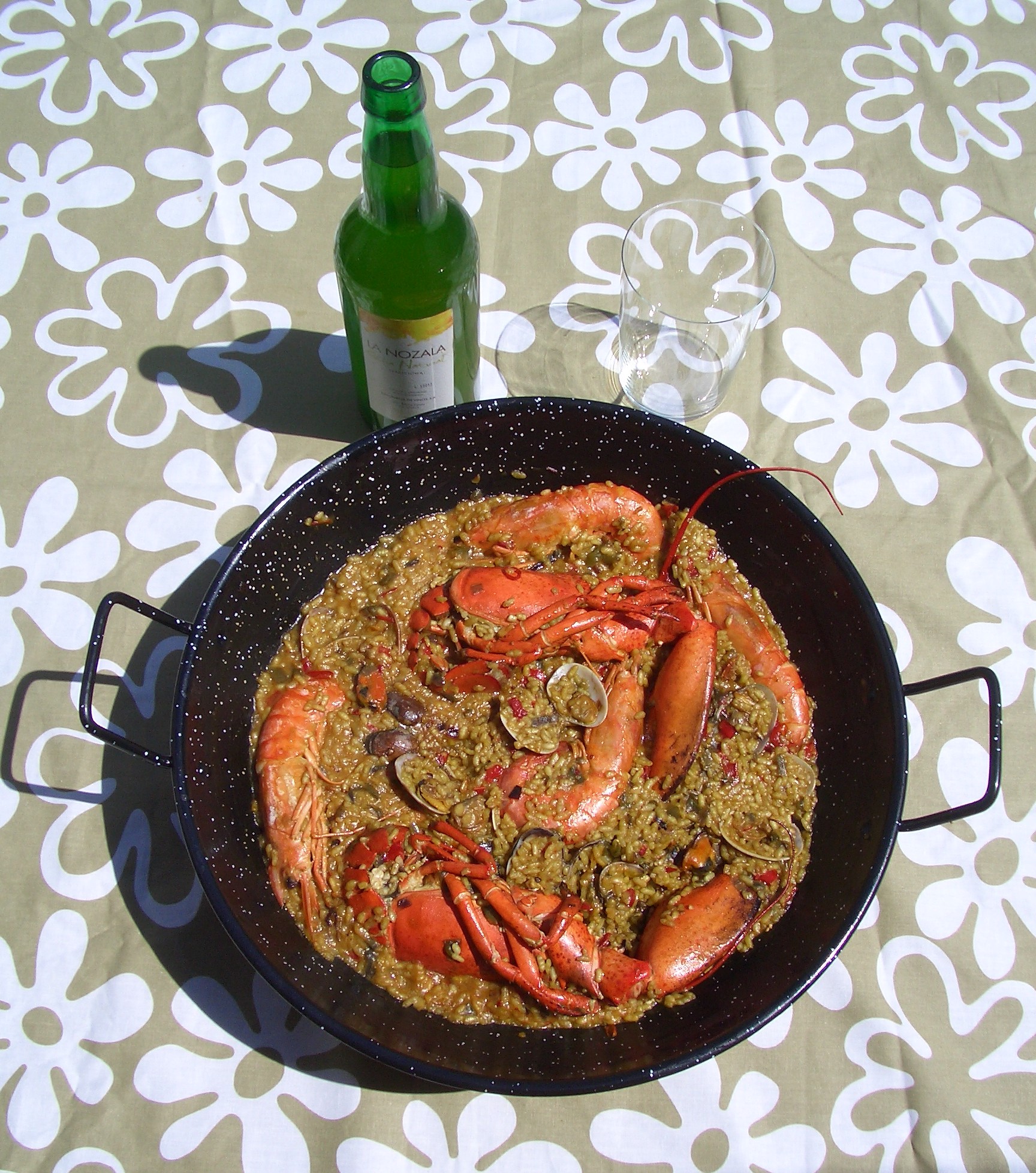 Unos cinco minutos más y ya tenemos nuestra paella lista, apagamos el fuego y la dejamos reposar un par de minutos, tiempo perfecto para sacar mis fotos, descorchar la botella de sidra y servirnos el primer culete. Si tuviese que poner una banda sonora la elección está clara, Happy de Pharrell Williams.