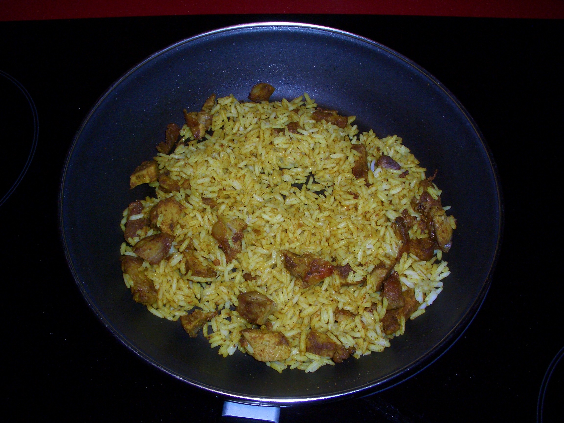 Cortamos el cordero en taquitos, salteamos en una sartén con un poco de aceite, añadimos el ras al hanut, mezclamos, añadimos el arroz que previamente habremos cocido, removemos y finalmente le añadimos un poco de la salsa que habíamos hecho para el cordero.