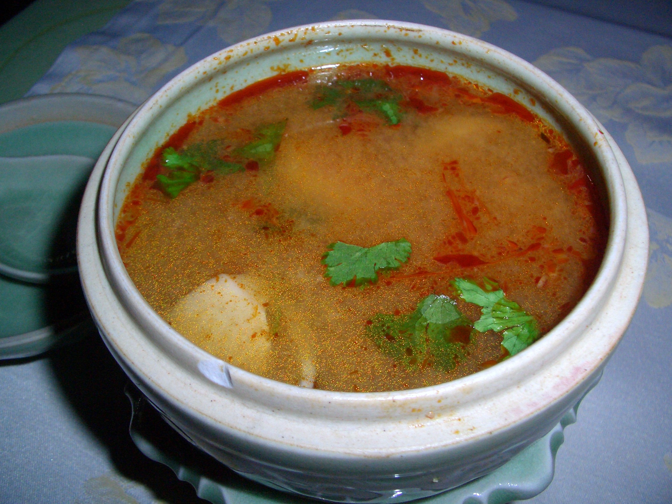 Aunque no hace frío la sopa picante con gambas Tom Yam Koong nos hace entrar estomacalmente en calor y recuperar sensaciones olfativas y gustativas con esos toques cítricos que aporta el lemongrass, cilantro…..etc.
