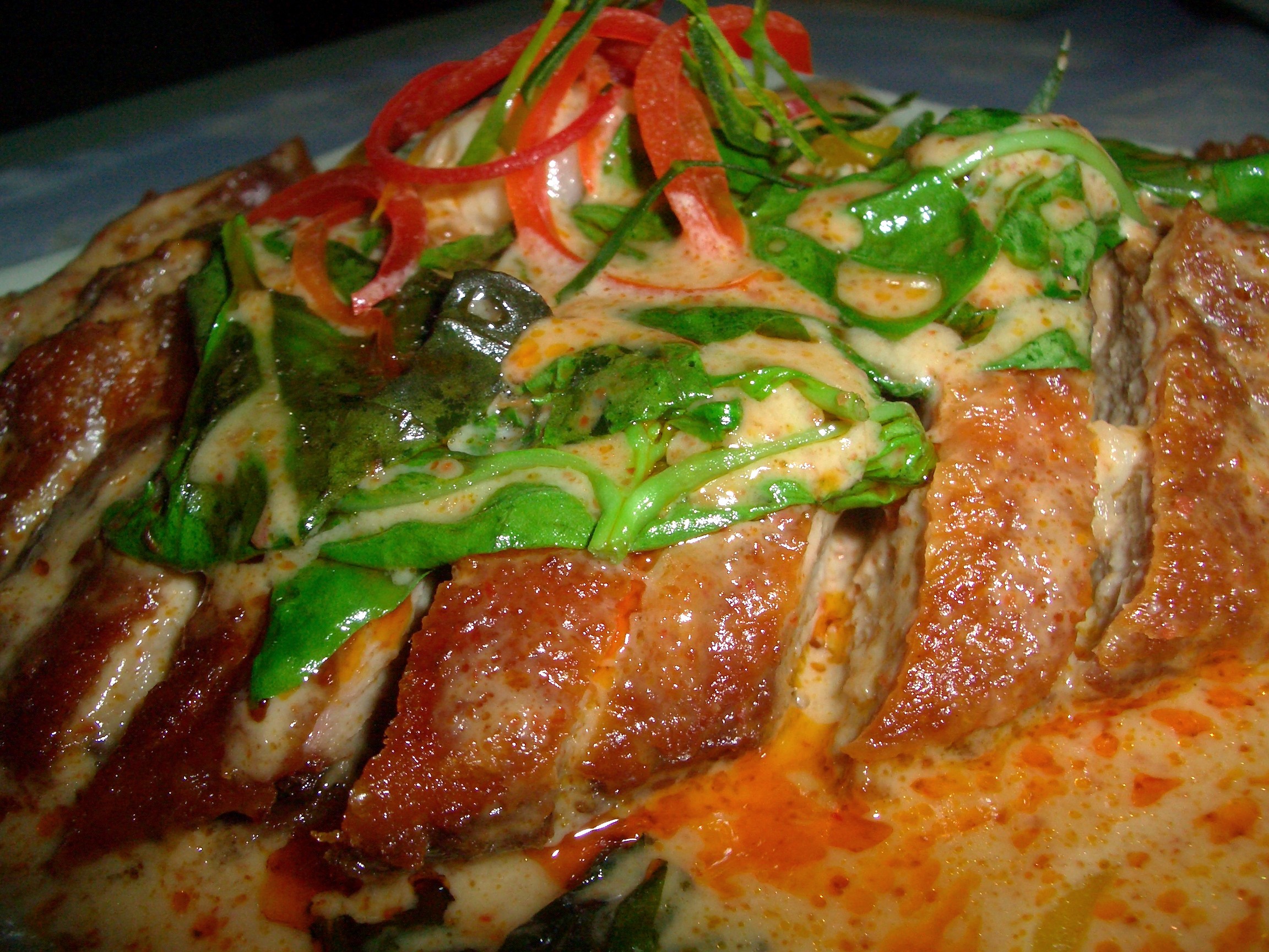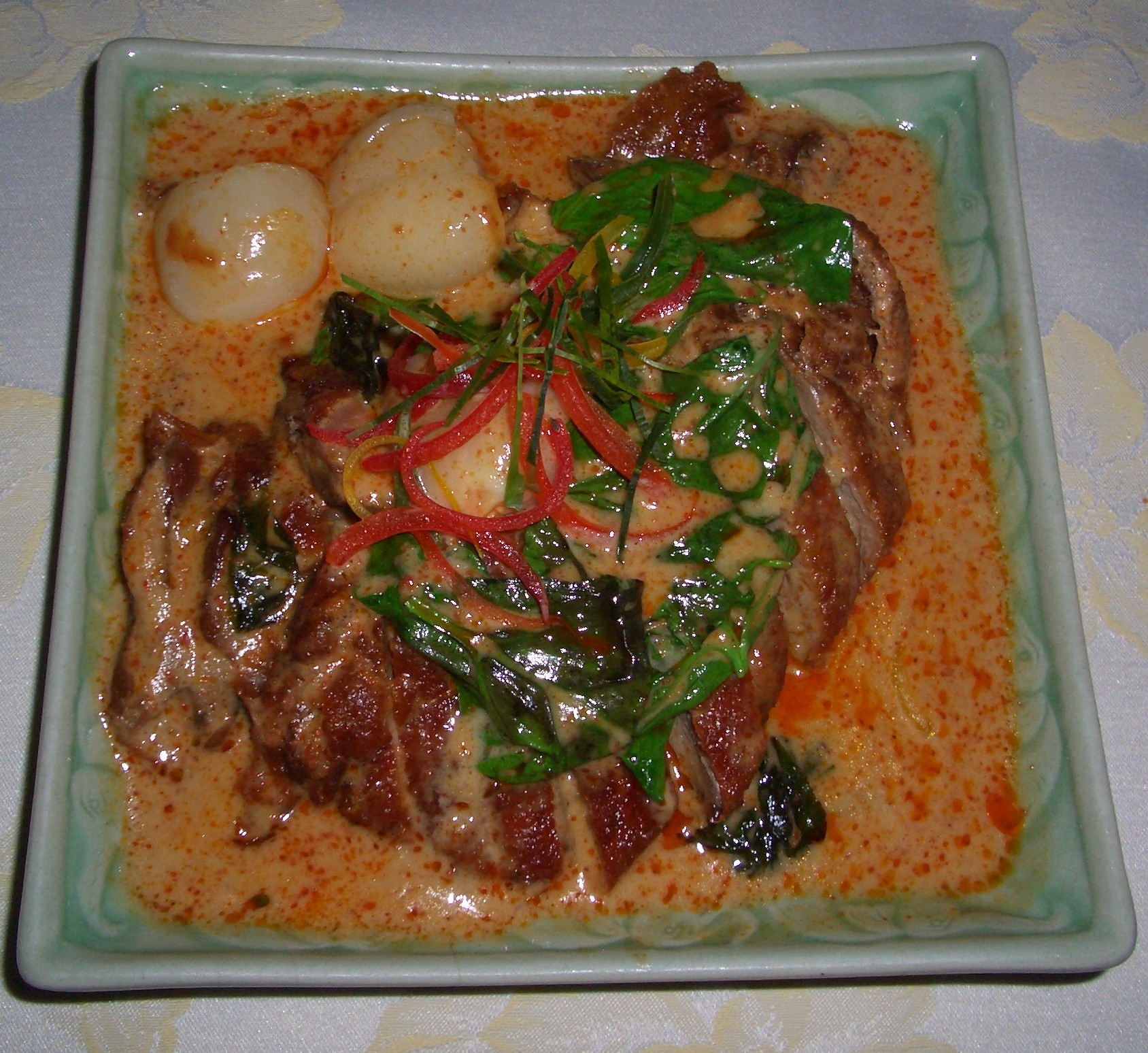 Otro de mis clásicos siempre es pedir pato, en este caso un curry rojo de pato rostizado que estaba muy crujiente y al que la leche de coco le aporta ese sabor tan característico.