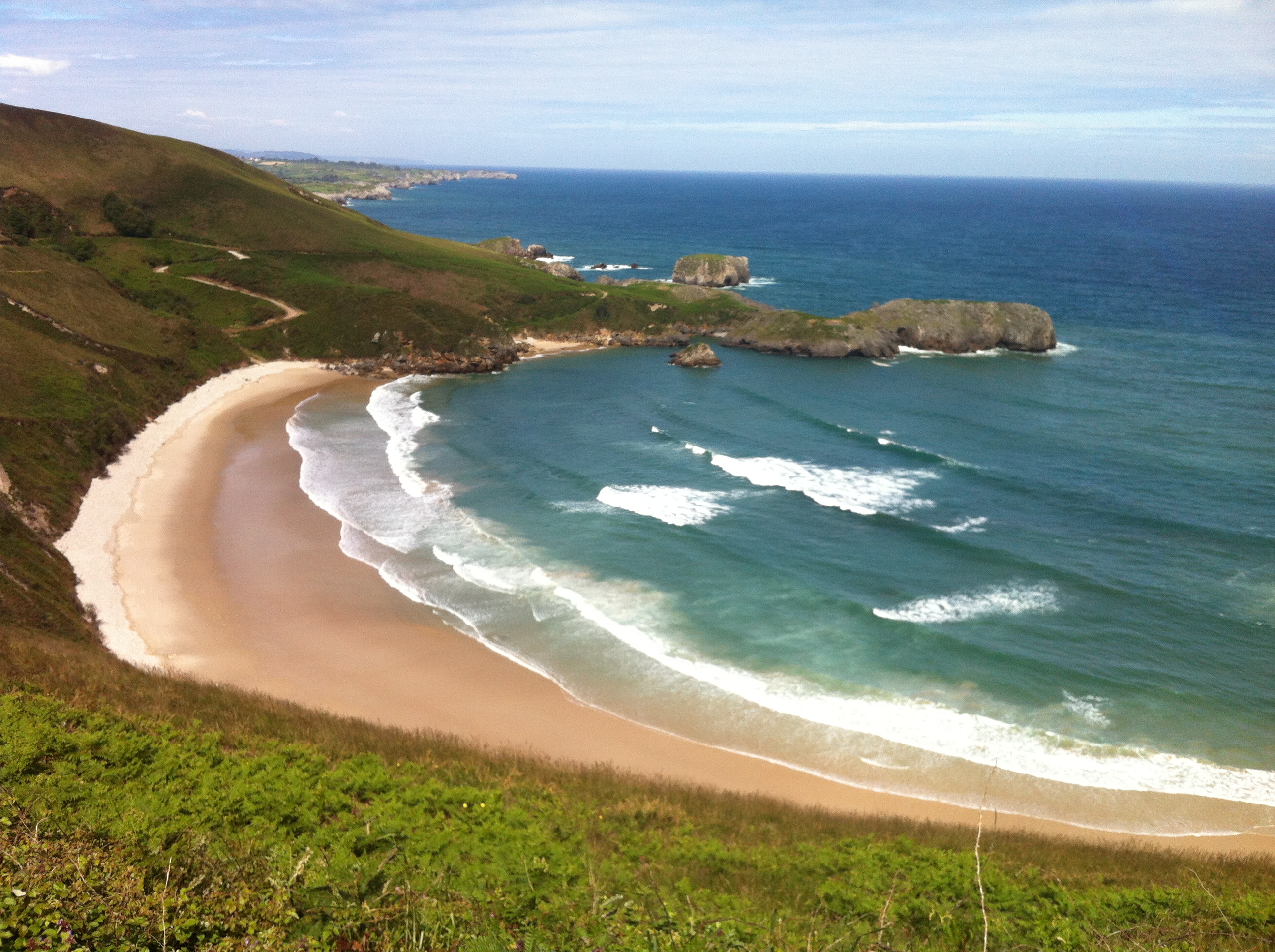 Cuando os hablaba del Paraíso Natural esta es una de las razones, llegar a finales de mayo a una playa vacía y sentirte con Robinson Crusoe. Arena fina, vistas inmejorables, un poco de música, un baño reparador en las frescas aguas cantábricas, ¿que más podía pedir?.