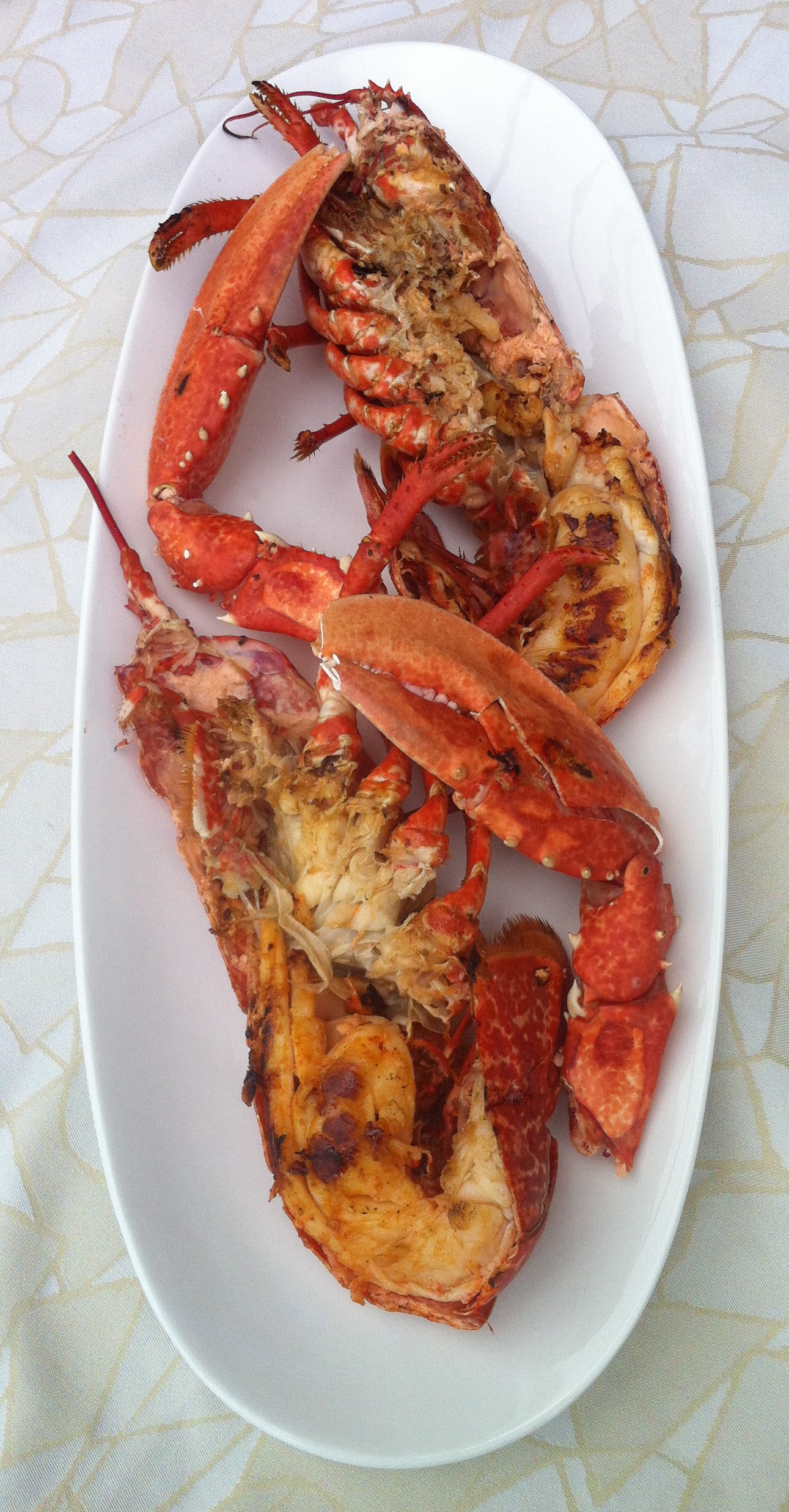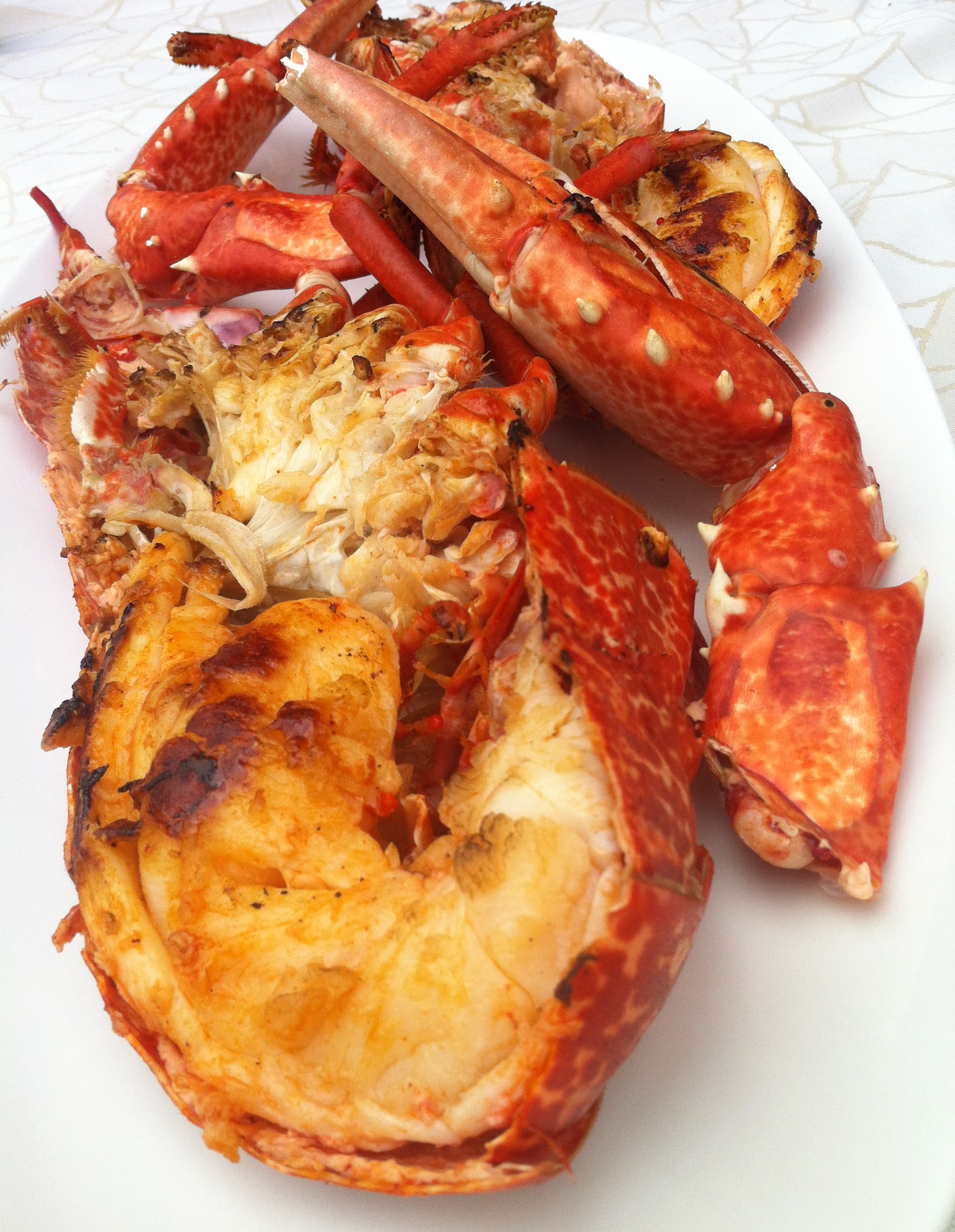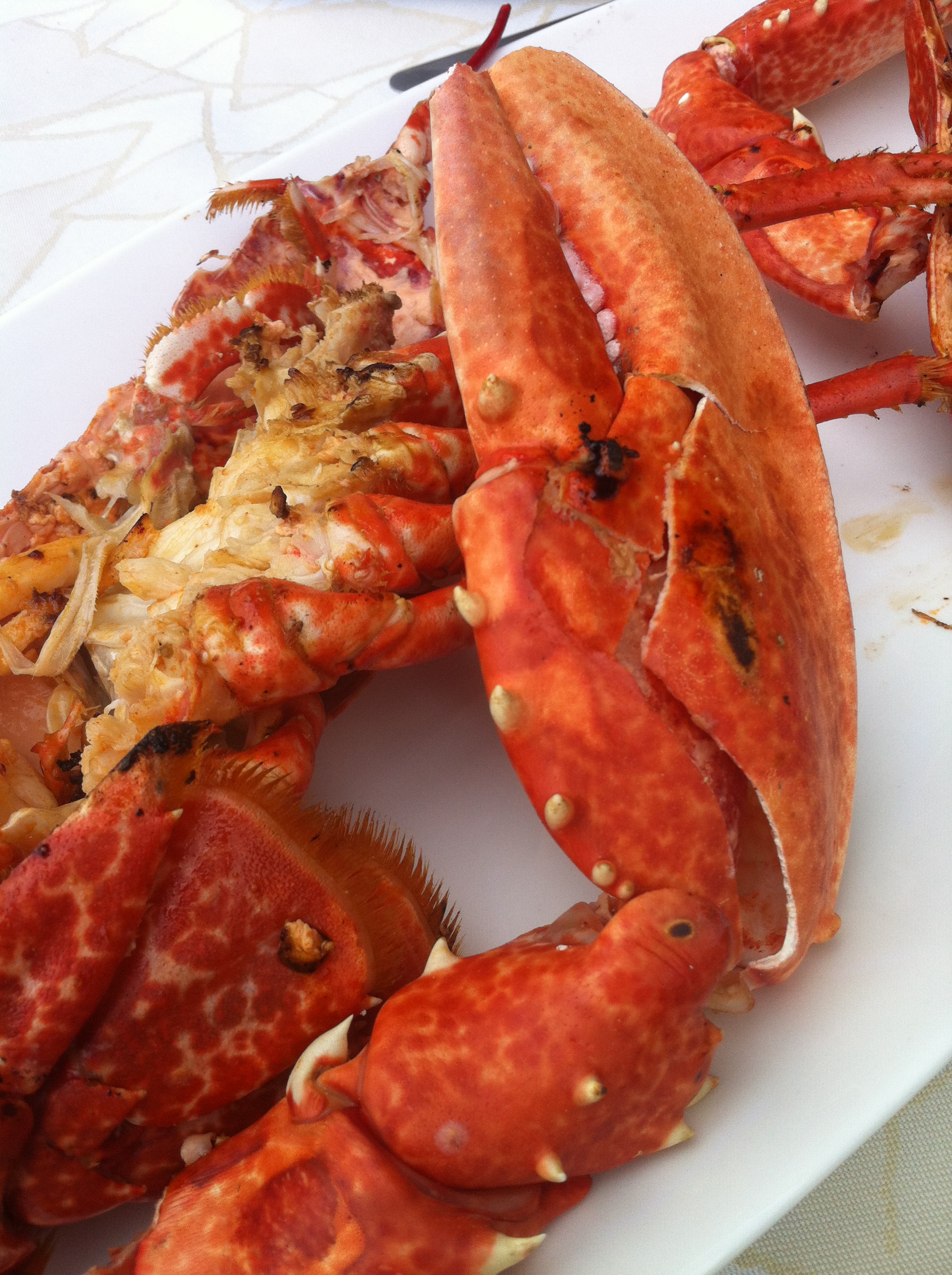 Después llego el bogavante azul, una preciosidad, hasta me dio pena pero……..me duro un segundo. A la plancha el marisco es una delicia y este ejemplar de 1,1kgs no podía ser menos, jugoso, prieto, sabroso, babeo solo con recordarlo.