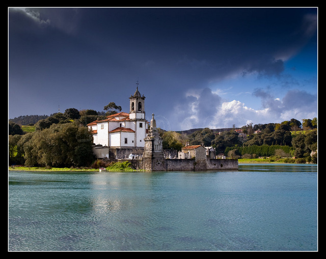 Esta a 50mts. del pueblo y a unos 200mts. de la preciosa iglesia que con marea alta se ve de esta manera. Me anunciaron que lo fundamental en La Parrera es darle al marisco y como persona educada y acoplada a tal menester no puse objeción alguna, para la dieta siempre viene bien.