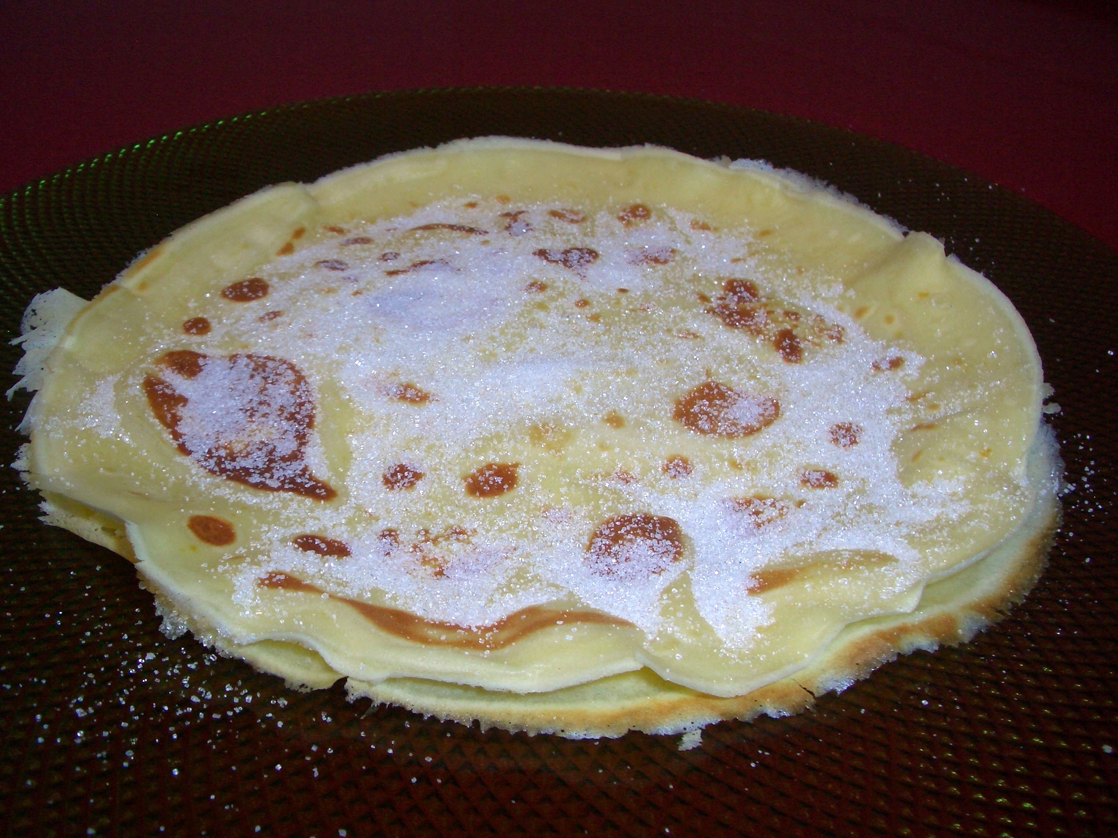 La idea básica es que una vez hechos y extendidos se espolvorean de azúcar y al colocar otro caliente encima forma un almíbar que se creará en tantas capas como pongamos. La forma de servirlos es enrollándolos aunque también pueden doblarse en forma de pañuelo.