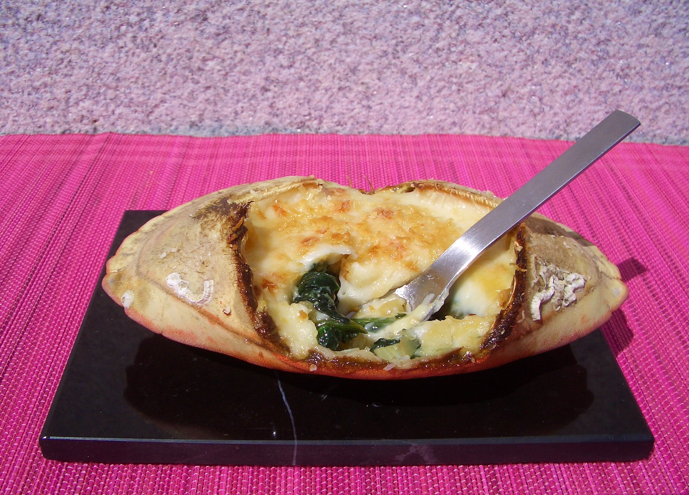 Ñocla Rellena de Espinacas – Edible Crab Stuffed with Spinach