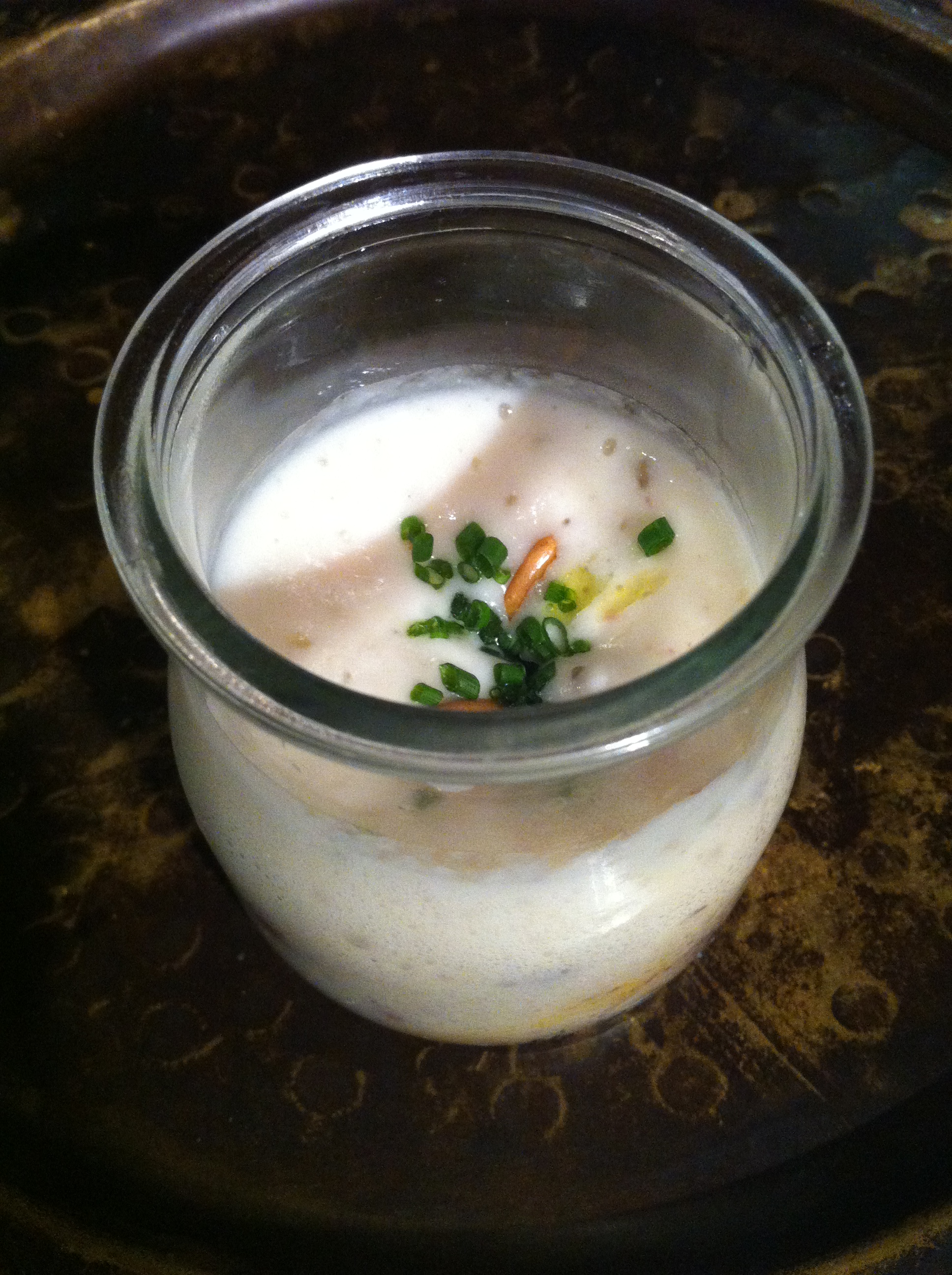 Mientras llegaba la comanda nos sirvieron un aperitivo con base de una crema de coliflor.