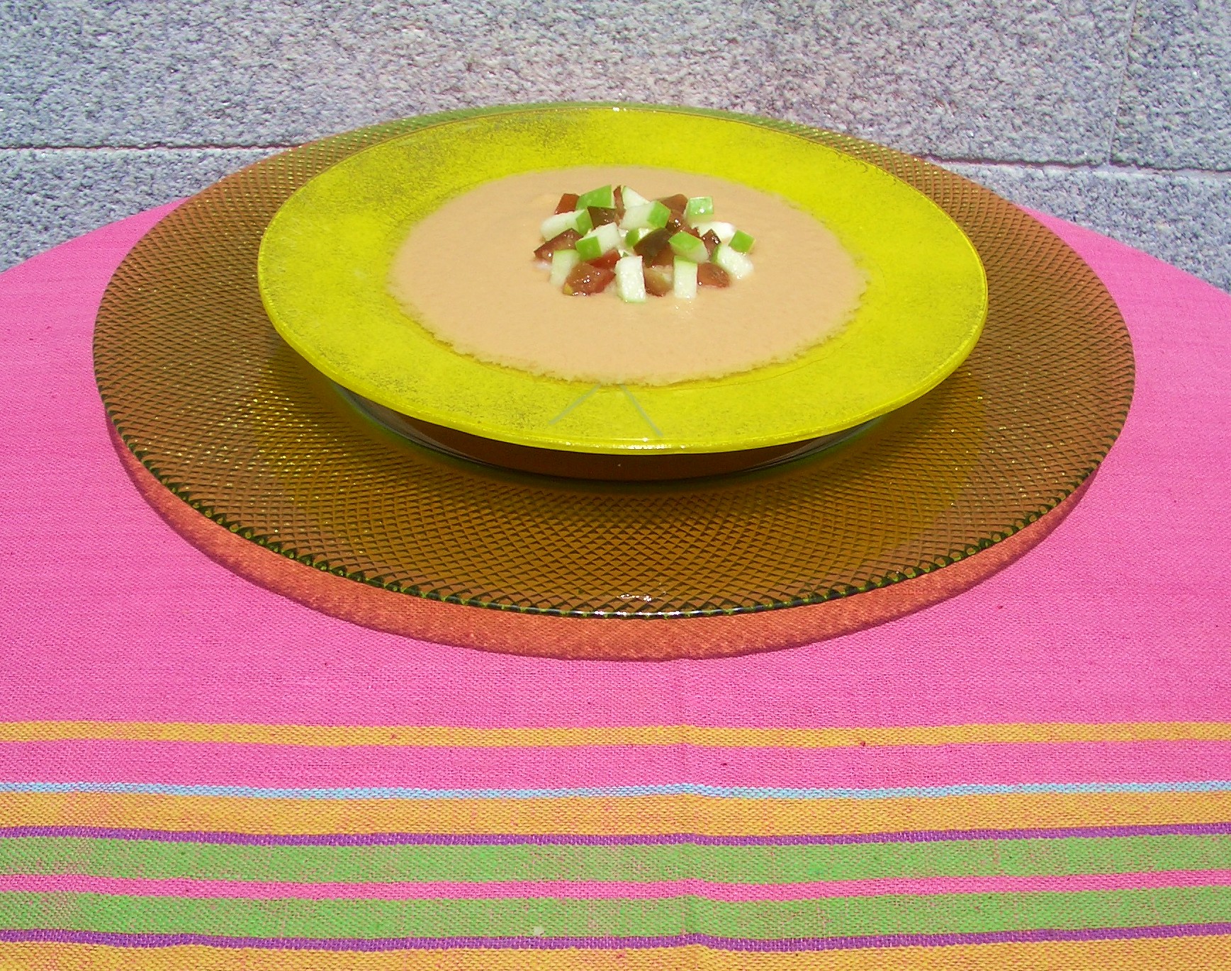 ¡Que bien queda la manzana en el gazpacho! Yo tengo publicada una entrada de «gazpacho blanco con crujiente de jamón» que la base es la manzana y es uno de mis favoritos.