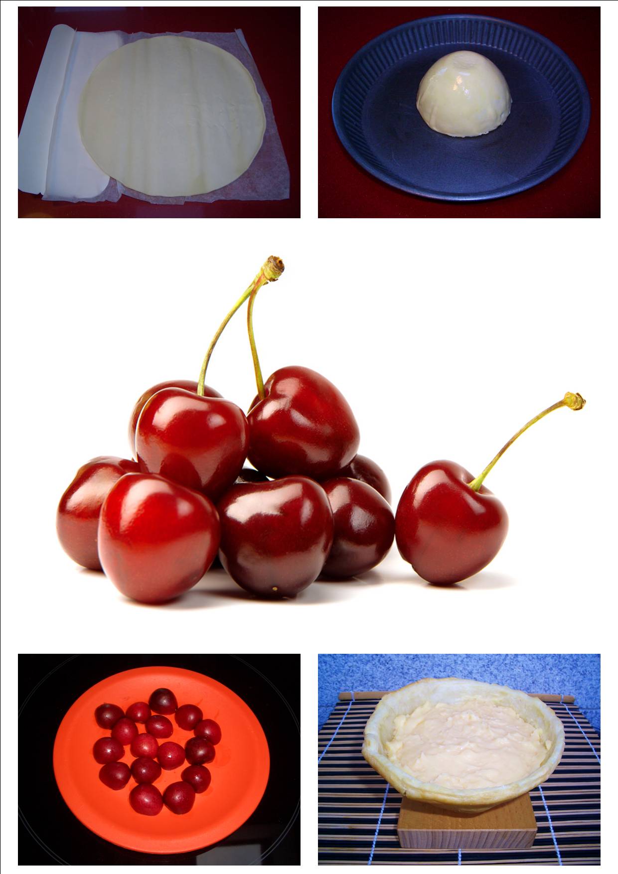 Teniendo hecha la crema pastelera este postre tiene tanto misterio como averiguar de que color era el caballo blanco de Santiago. Huelga decir que las cerezas se pueden sustituir por cualquier fruta o combinación de frutas que se os antoje.
