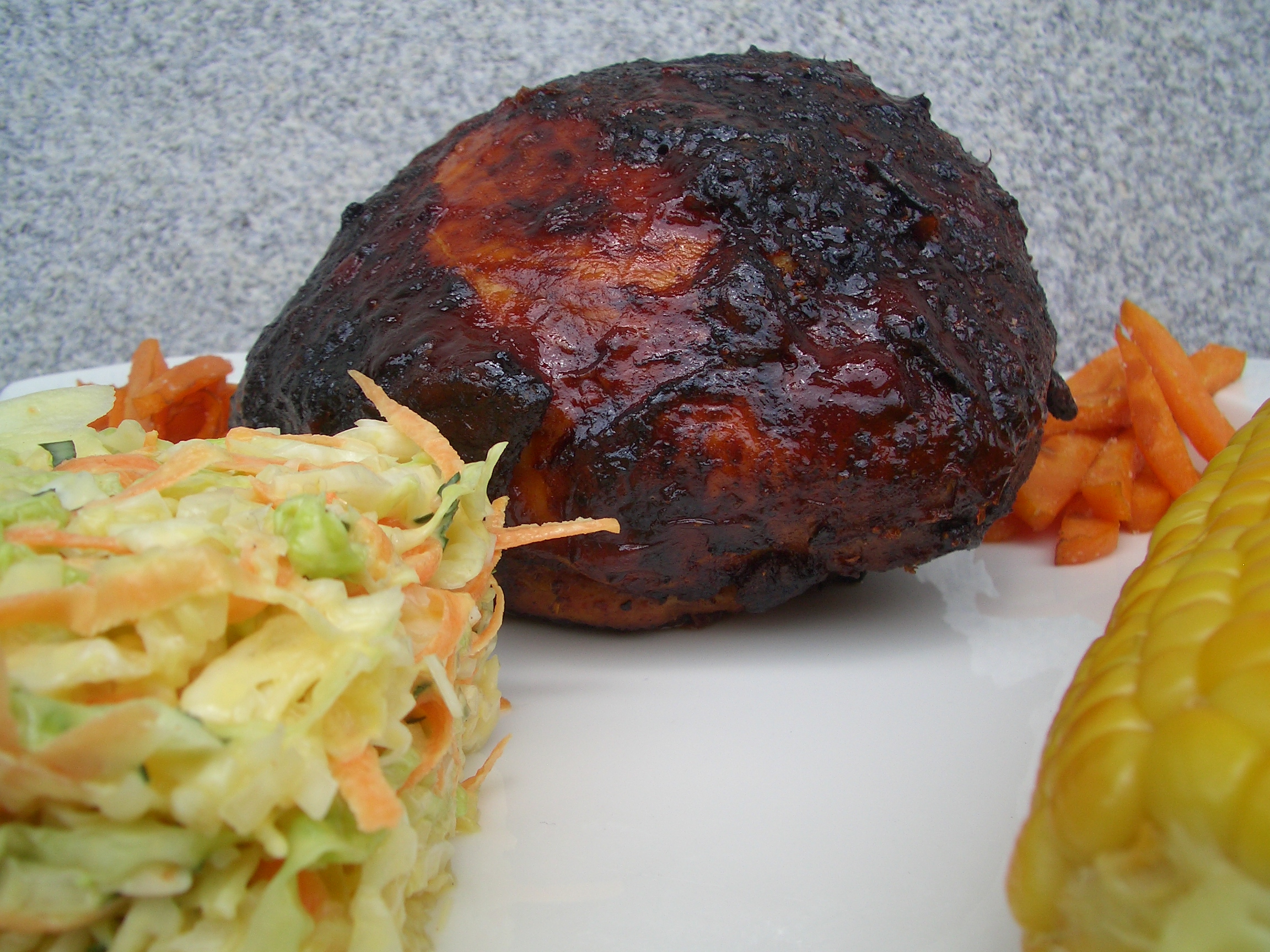 Previendo este día hable con mi ex novia americana Jennifer y le consulté cual sería la receta icónica para este día y su respuesta fue «slow cooked pork shoulder with BBQ sauce, coleslaw salad and sweet potatoes». Me puse manos a la obra y con alguna modificación el resultado es el que veis aunque para haber sido más ortodoxo tendría que haberlo hecho en la barbacoa en vez de el horno.