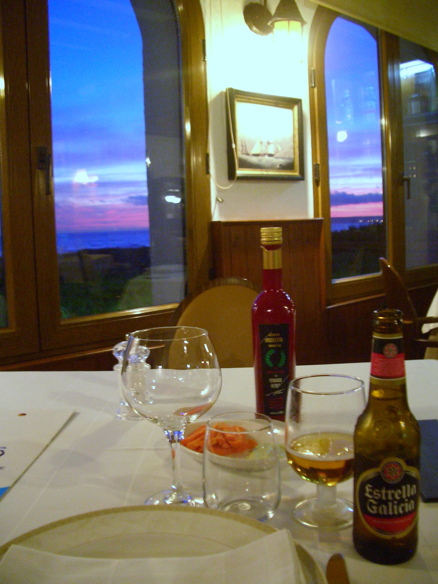 Se acerca la hora mágica, el sol está próximo a esconderse y las puestas de sol que estoy contemplando aquí bien merecen los 1000kms de desplazamiento aunque solo sea por disfrutarlas. Antes de entrar aprovecho a tomar algunas instantáneas pues aunque tienen una magnifica terraza desde la que cenar viendo en plenitud esa puesta de sol, la luz interior me resulta escasa para mis propósitos periodísticos.
