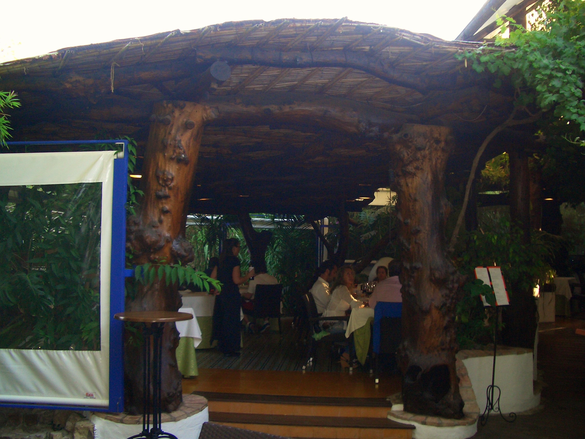 Las mesas se distribuyen en diferentes zonas, a diferentes alturas, en distintos rincones de gran belleza natural, su estructuración le da gran movimiento y se nos hace difícil elegir cual resulta el lugar mas bonito para degustar nuestra comida.
