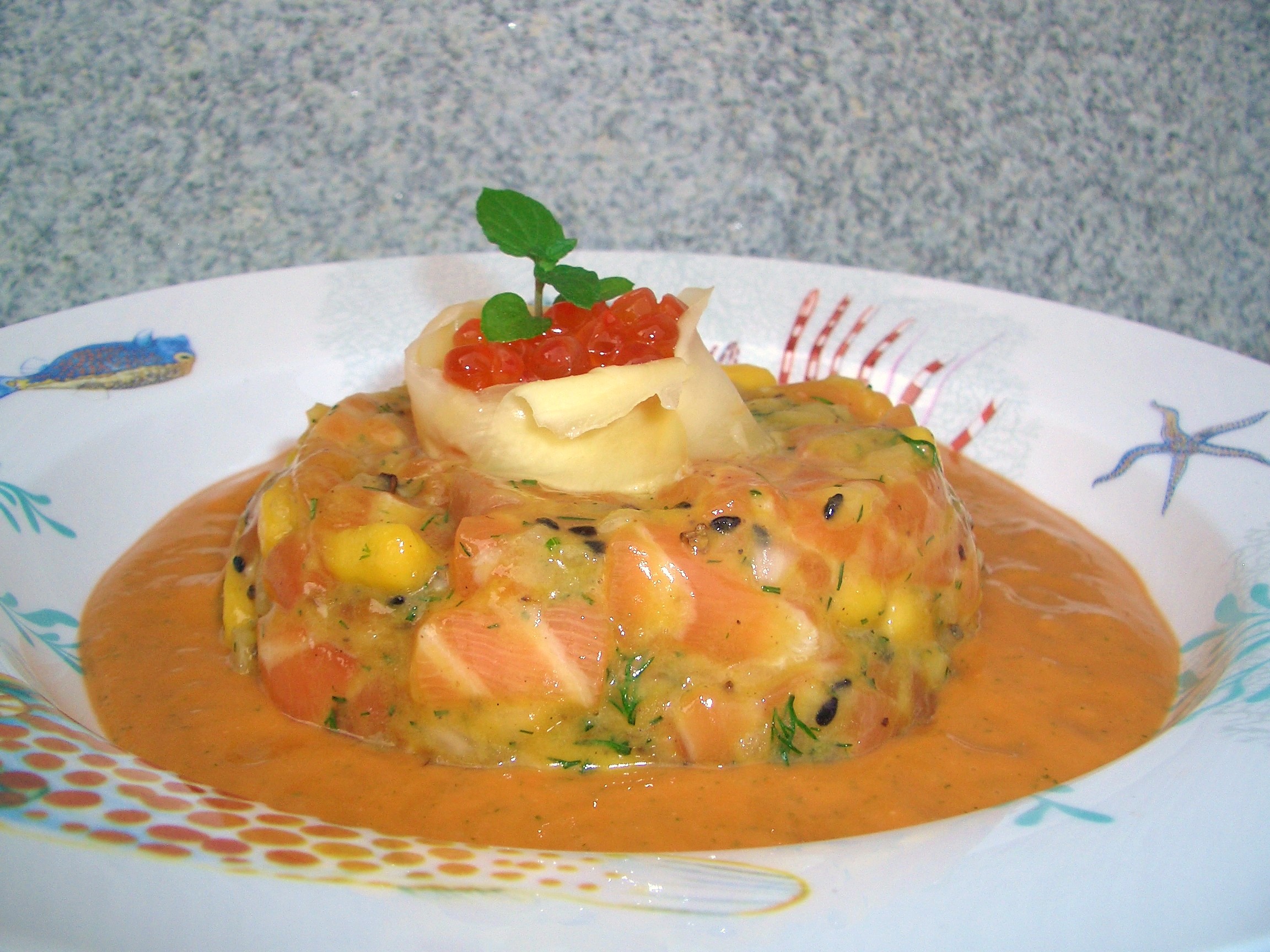 Es un plato muy refrescante y completo en todos los sentidos ya que incorpora pescado, fruta y verduras. Si bien puede que el concepto del tartar y sus adeptos no seamos legión, las carnes y pescados crudos aunque aliñados requieren tiempo y educación culinaria; al igual que les sucede a los niños con todo aquello de color verde, es cuando alcanzamos cierta madurez que nos hace tener una mentalidad más abierta.