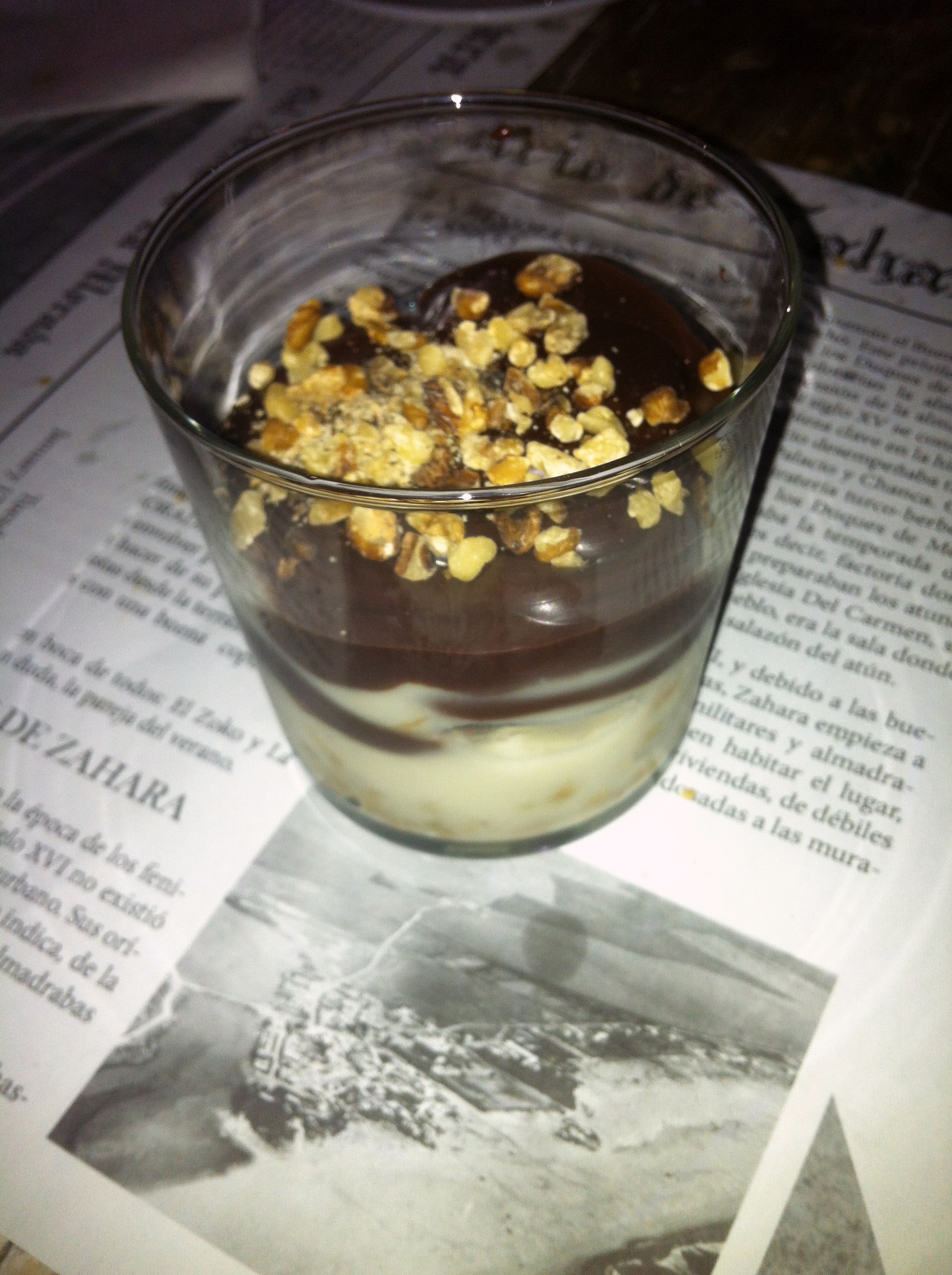 No fue el fútbol lo que nos llevo allí, lo mio es la comida y en el Zoko todas las veces que había pasado por ahí todo tenía muy buena pinta y el ambiente parecía muy divertido. Encontramos mesa en uno de los barriles de la terraza y no lo dudamos, nos atendió Carmela, una jerezana muy simpática y eficiente con la que más tarde coincidiríamos tomando una cerveza con su compañera granadina y otros amigos con los que nos echamos muchas risas.