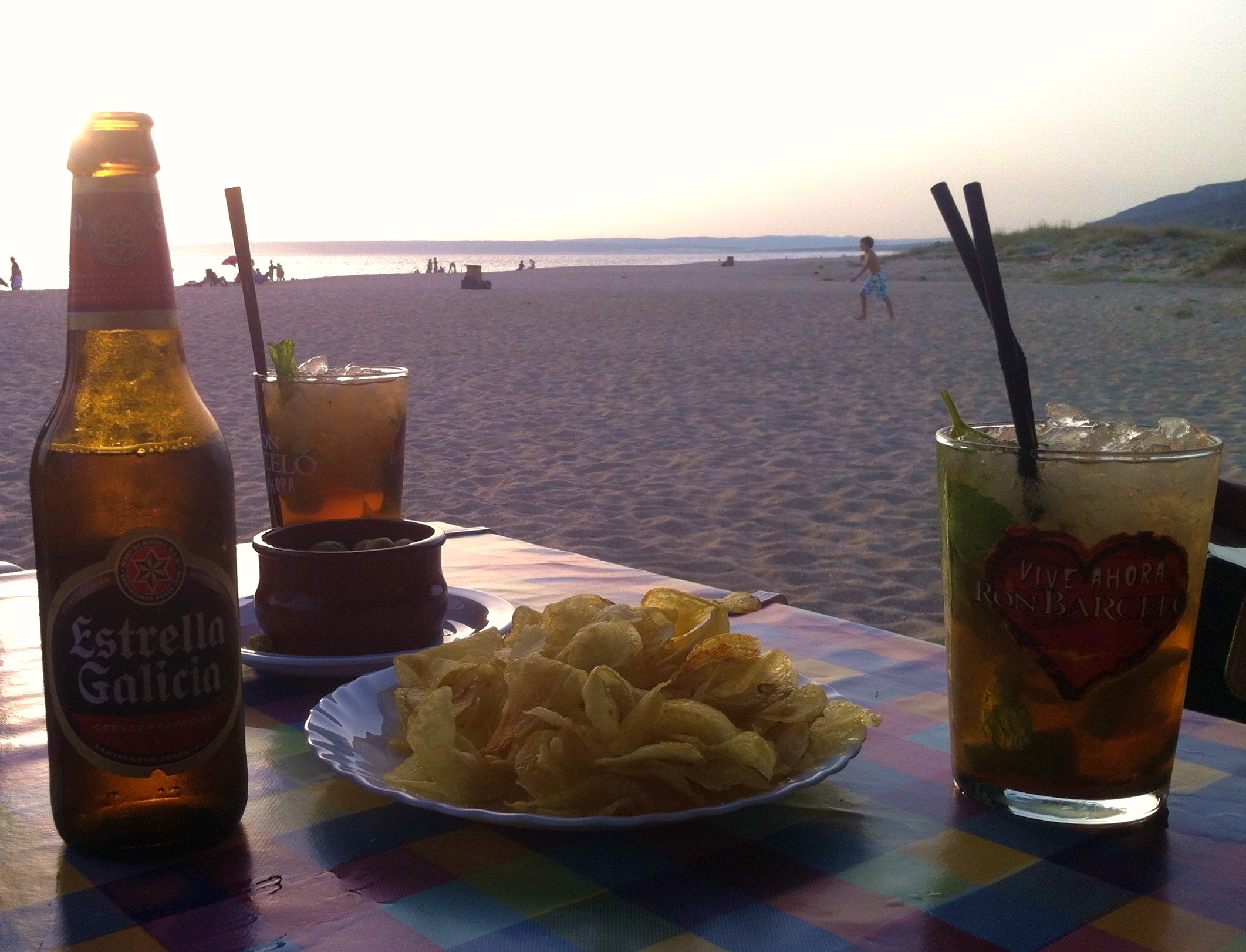 Todo esto se hace más llevadero si estas en compañía de amigos y en mi caso los últimos tres días estuve acompañado por María y Nacho que habían agotado su quincena de calendario en Conil y los acogí gustosamente. Últimos baños en las aguas transparentes de Atlanterra, últimas horas de sol que tanto echo de menos en esta encapotada Asturias Patria Querida, últimas cervezas y mojitos, última puesta de sol con el faro de Trafalgar por testigo y toca despedirse de mis chicas y chicos del Chiringuito La Costa que tanta compañía me han hecho, les cogió por sorpresa pues no lo había avanzado y algo de tristeza también sintieron pues fueron muchas horas viéndome desayunar y escribir mis artículos.