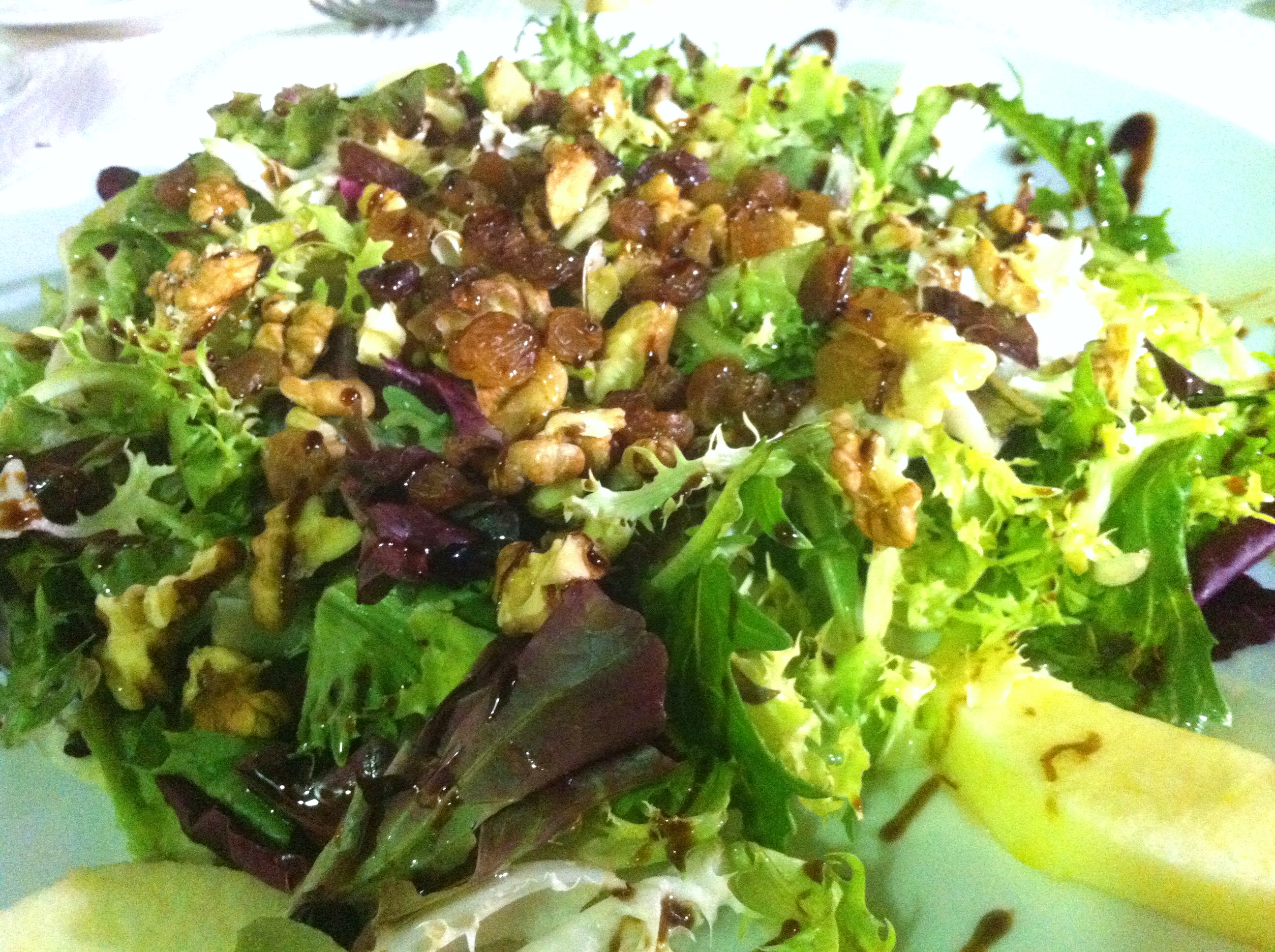 Comenzamos por una clásica ensalada con frutos secos y manzana.