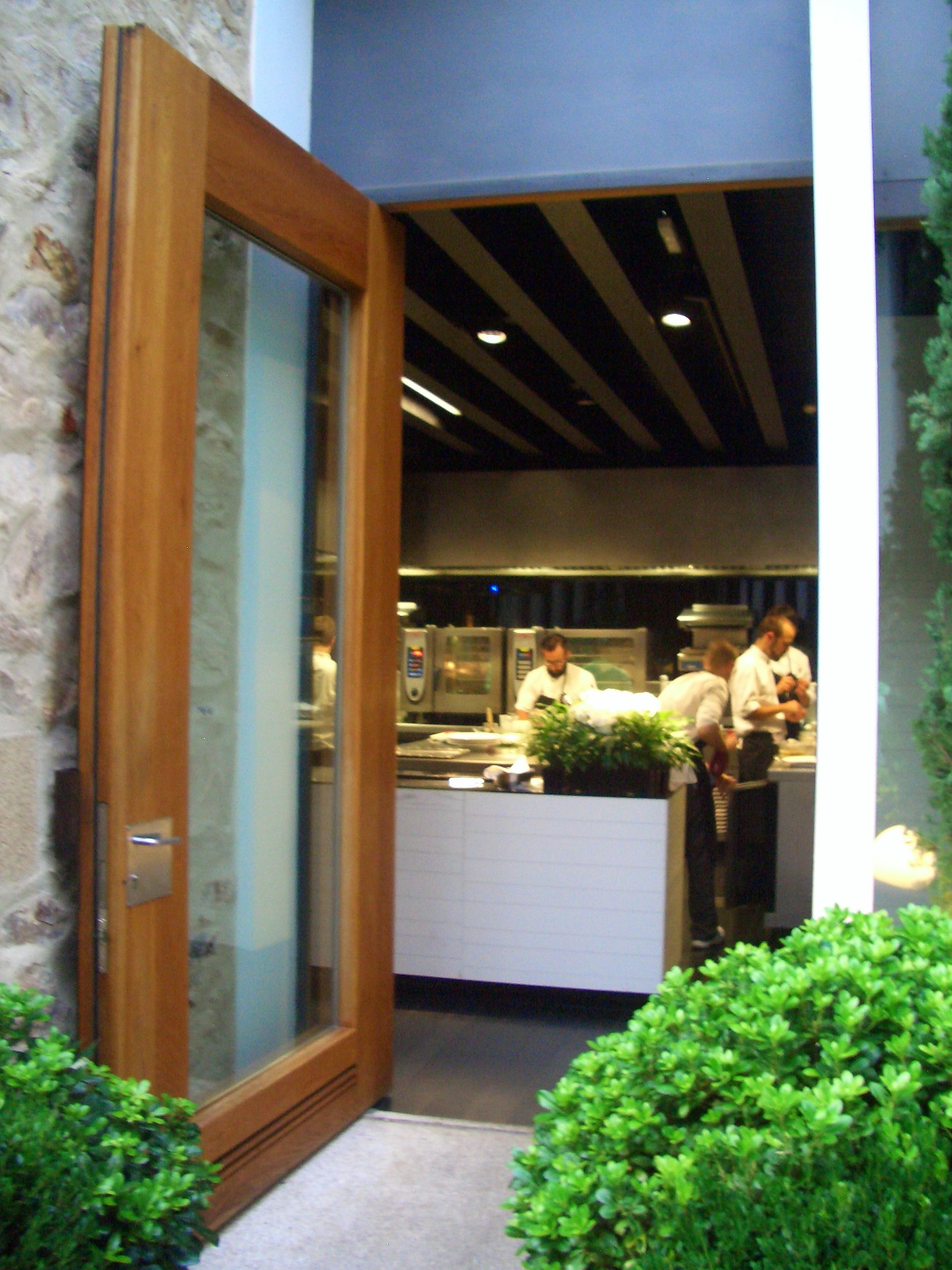 A pesar de que me hallaba muy a gusto en la terraza disfrutando de la frondosidad de las plantas y de las lineas rectas de su arquitectura, estaba impaciente por sentarme a la mesa y empezar a sentir.