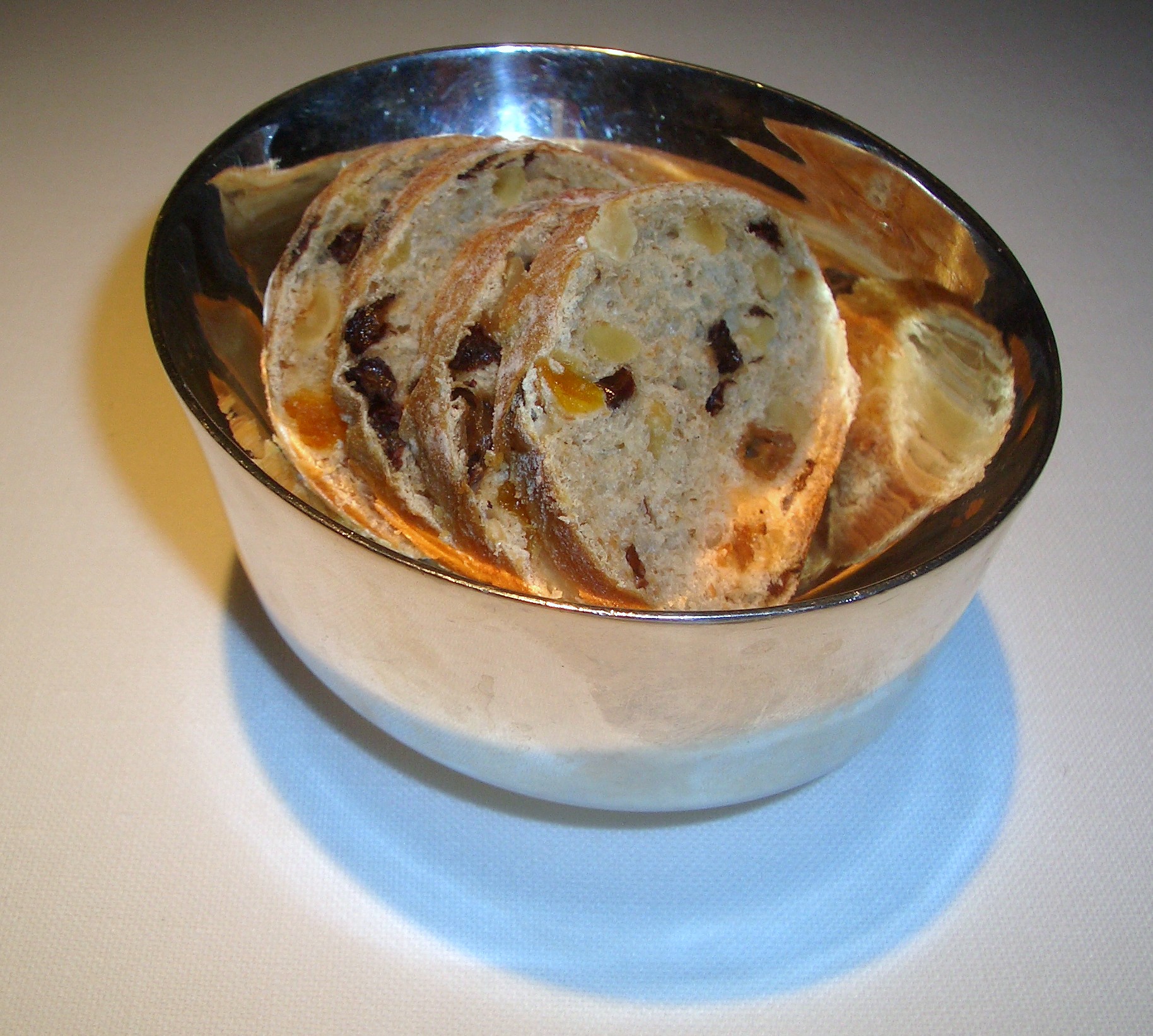 Poco a poco, sin prisa pero sin pausa nos vamos acercando a nuestro destino y no se me ocurre mejor manera que con el Binomio, de torta del casar con membrillo y aceite especiado. Muchos son los atractivos de Cáceres y si en su nombramiento como Patrimonio de la Humanidad hubo alguna duda creo que este magnífico queso algo tuvo que influir en el jurado. Se nos presenta en dos texturas: en su estado natural lo tenemos en la parte inferior y en el superior en forma de helado con un poquito de membrillo y aceite de vainilla. Se sirve con un pan de pasas y orejones para poder untar.