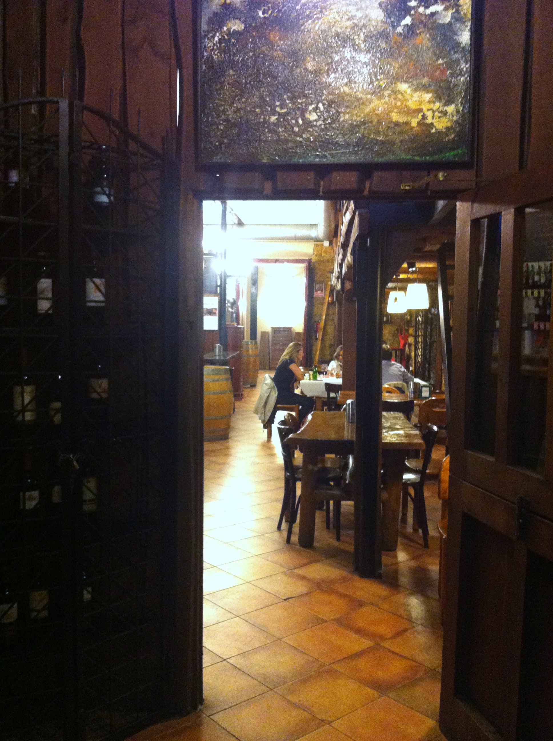 La decoración tipo tasca entra dentro de los cánones, manteles de papel, taburetes con mesas altas, paredes de piedra, pizarras con la selección de vinos y tapas, botellas de vino por todas partes, no hay lugar a engaño.