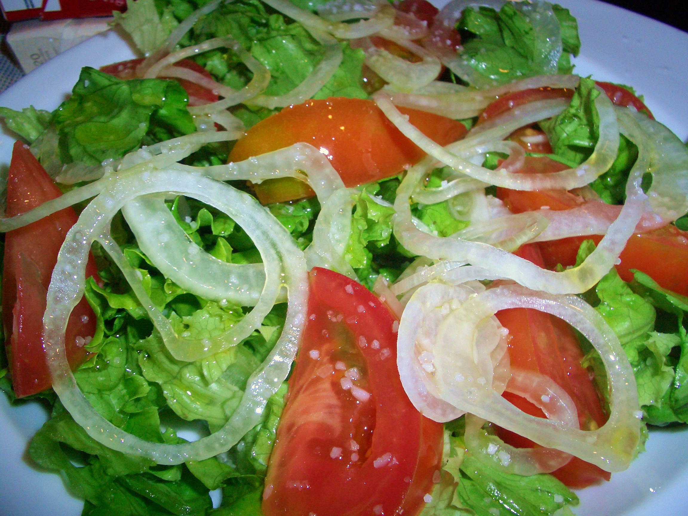Ensalada de lechuga, tomate y cebolla.