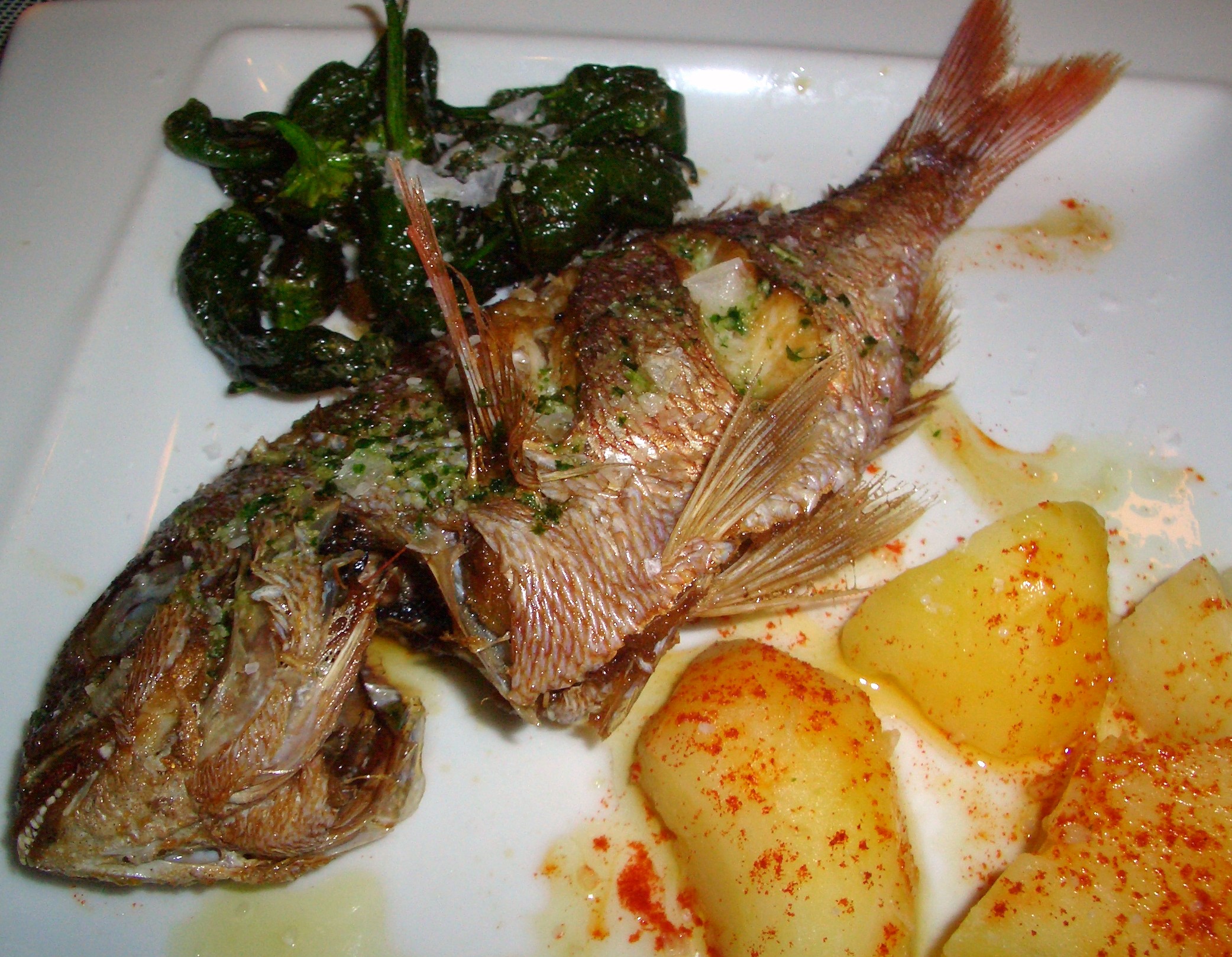 El otro punto negativo han sido las cantidades, las imágenes valen más que mil palabras, 8 navajas, una tapa de pulpo, un besugo con el que un niño de 4 años quedaría con hambre. Todo sería correcto si hubiésemos pagado 15€ pero por 10€ más por comensal con 2 cervezas y 4 copas de Albariño no resulta de recibo e insisto, la comida estaba rica.