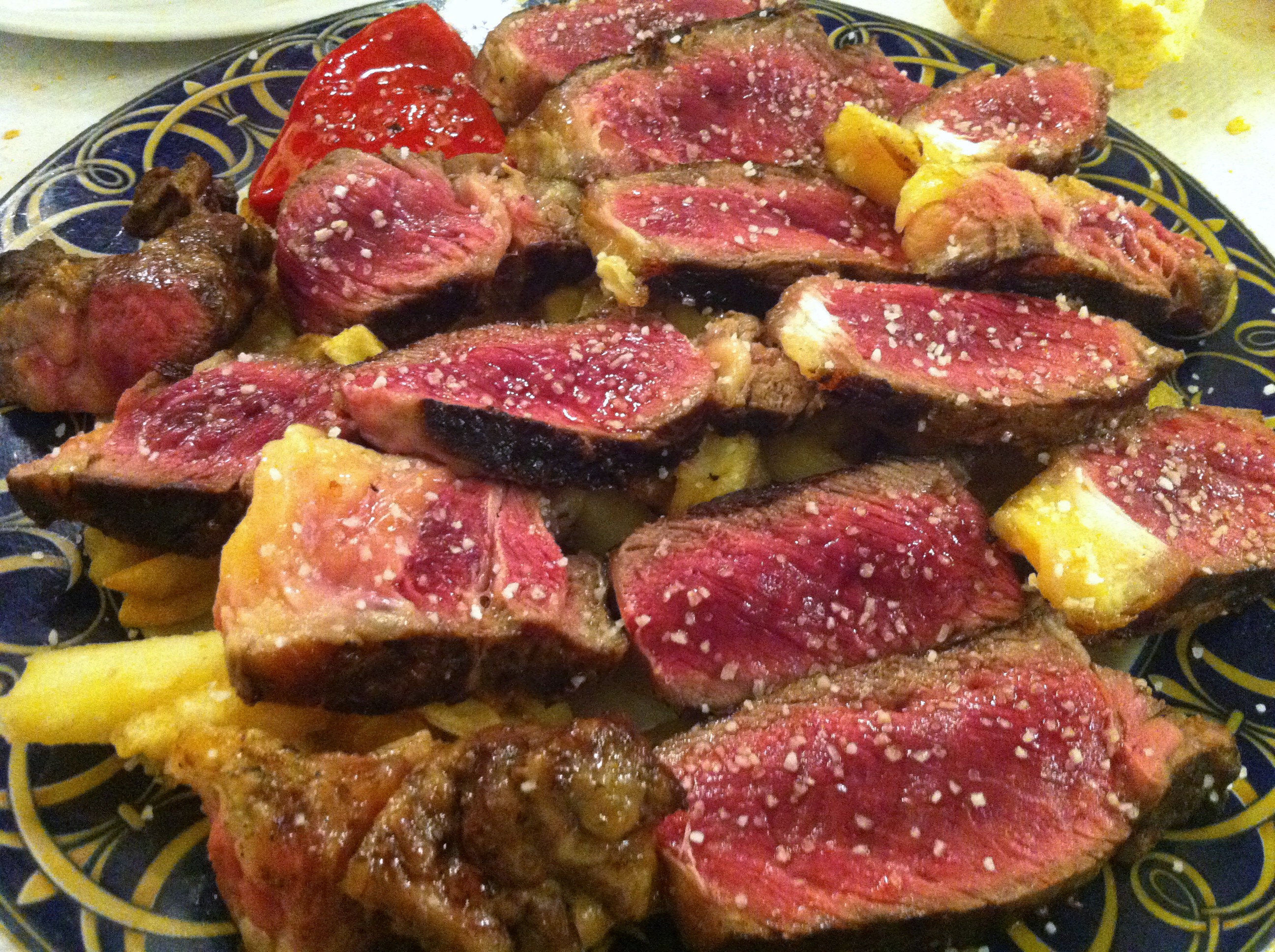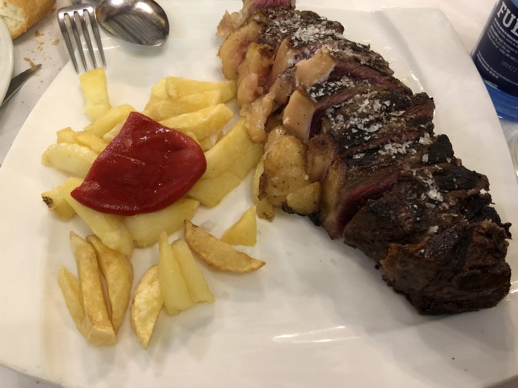 En esta nueva visita además de ampliar platos que no tenía recogidos, como los callos y una tarta de almendra, tenían una especie de jornada de chuletones donde además del habitual, podíamos elegir entre el de vaca rubia gallega selección, vaca frisona holandesa (nuestra elección), vaca roja danesa y vaca simmental.