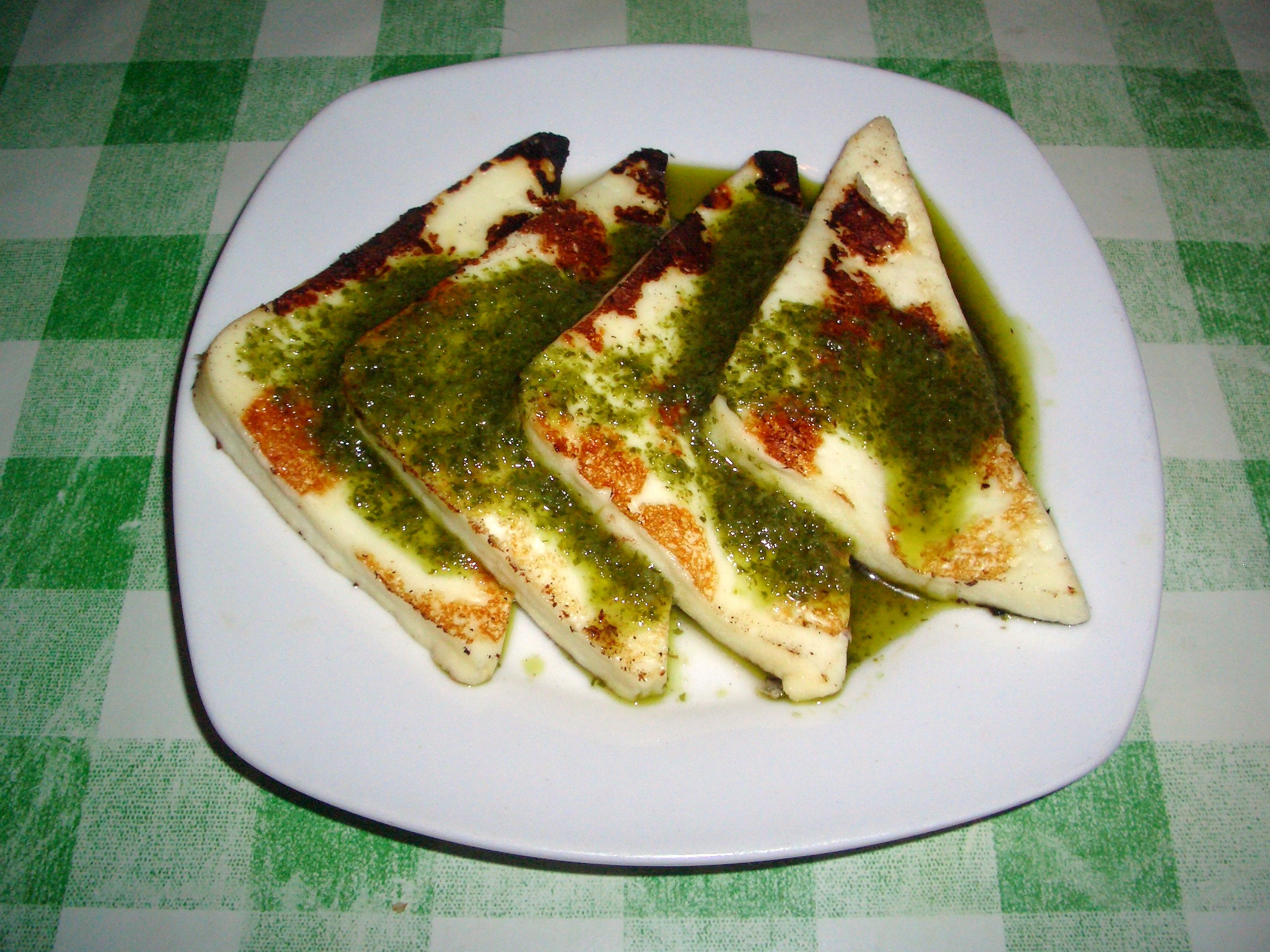 Seguimos con un queso asado con mojo verde. Se trata de un queso de cabra semicurado.