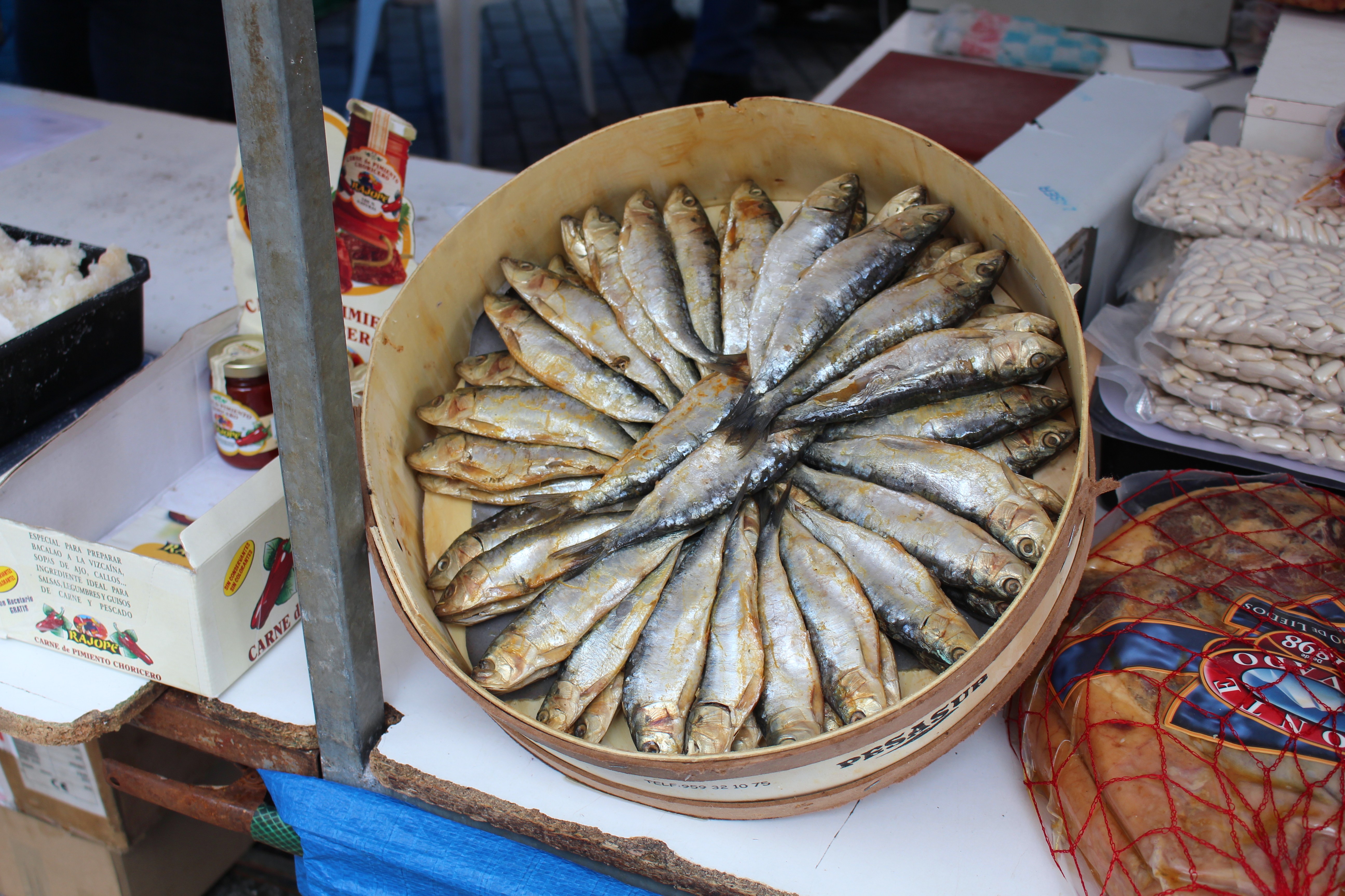 Paseando por el mercado dominical de Grado, entre su multitud de puestos vi una de esas cajas de sardinas salonas que me pusieron como una moto y rápidamente activaron mis neuronas. Esta salazón me encanta, sin duda herencia de los gustos de mi madre y abuela. Aún recuerdo algún verano en Benavides de Orbigo donde debajo de los arcos sacaban estas atractivas cajas ya que Castilla-León es una gran consumidora de este producto. Antiguamente las regiones sin costa no lo tenían fácil para consumir pescado fresco y esta era una de las formas en que suplían su consumo.