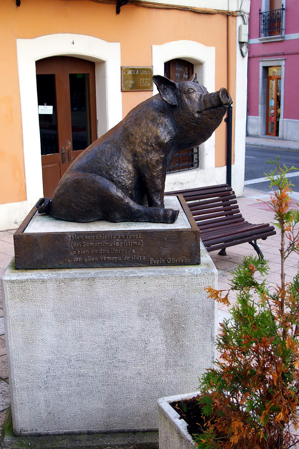 Son tan agradecidos y conscientes de la importancia del cerdo en Noreña que hasta tiene su propia estatua y aunque luzca plácidamente sentado en la peana ya sabéis el dicho «Del cerdo se aprovecha todo, hasta los andares».