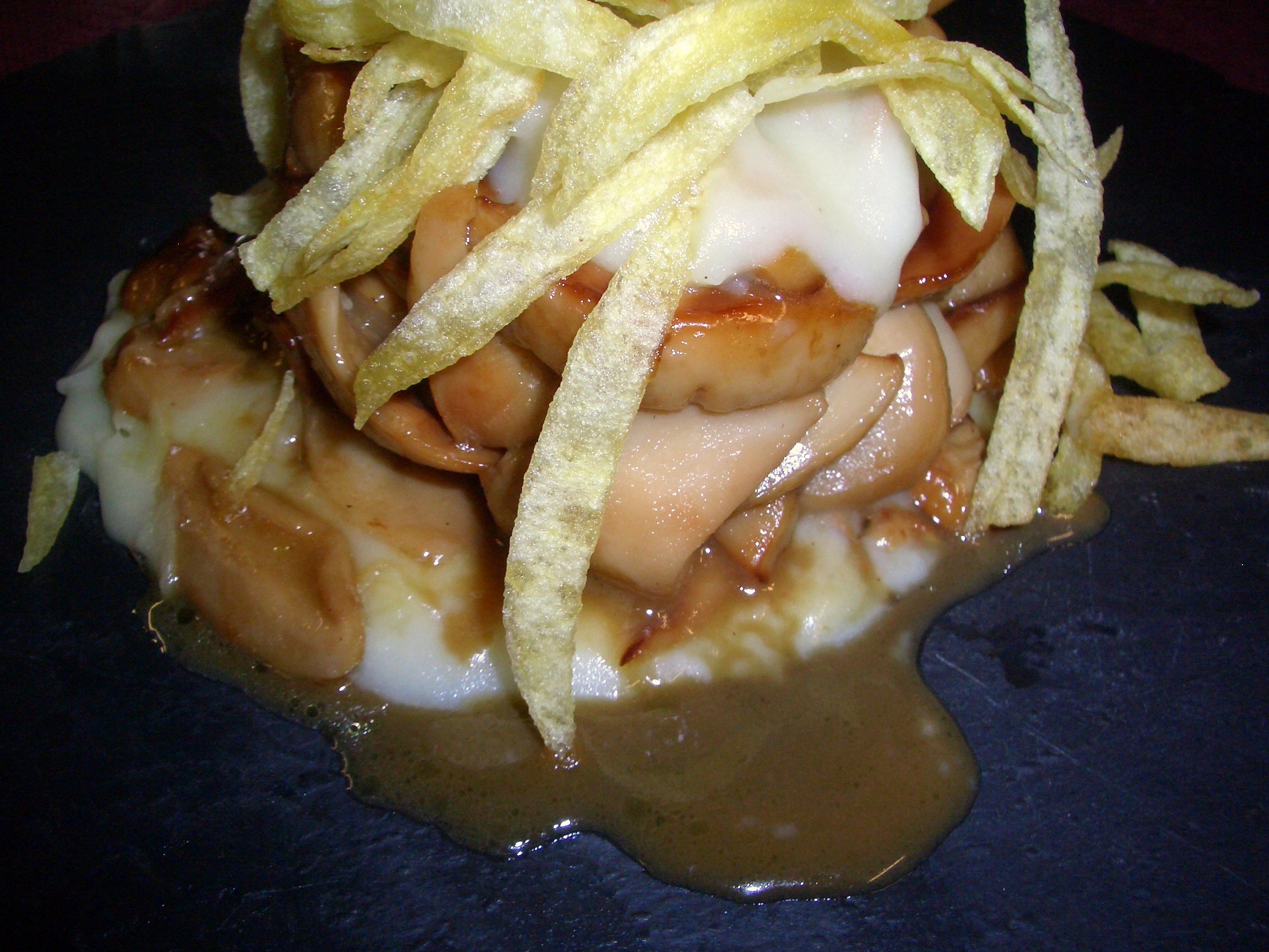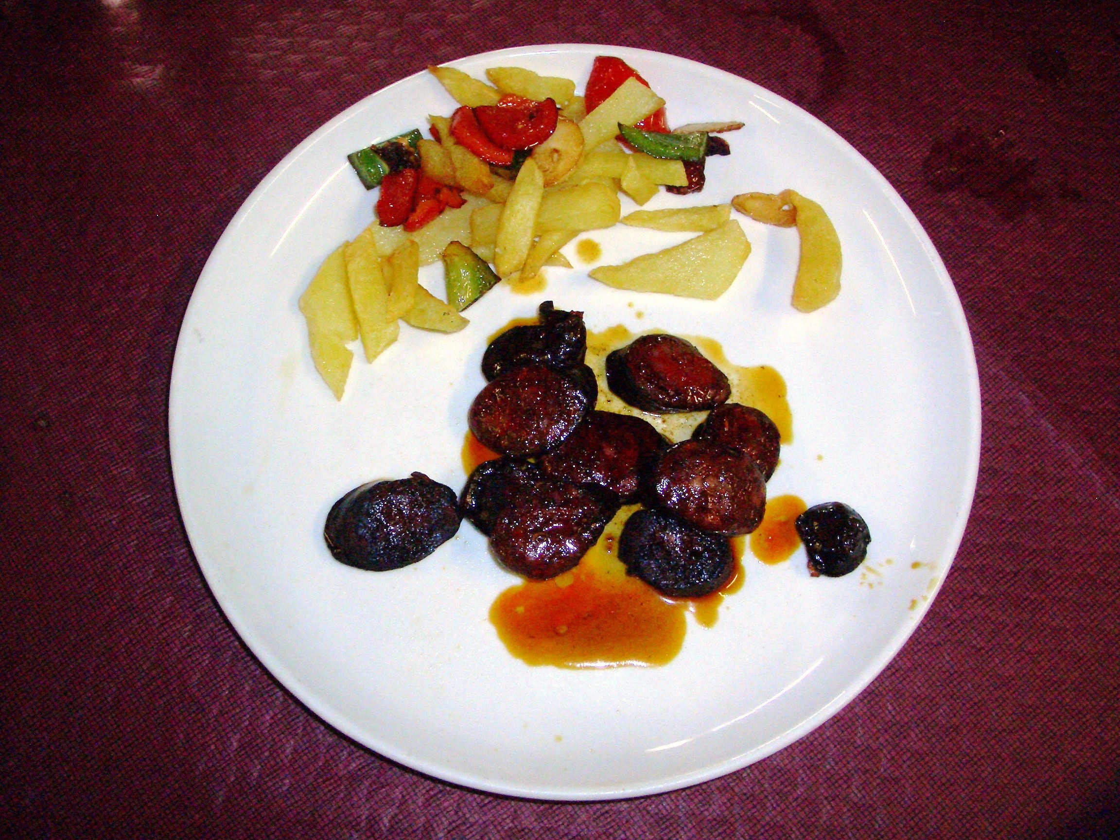 Atacamos las raciones de callos, buen grosor y una salsa en la que podríamos mojar una barra de pan entera, por supuesto acompañados de una buenas patatas fritas.