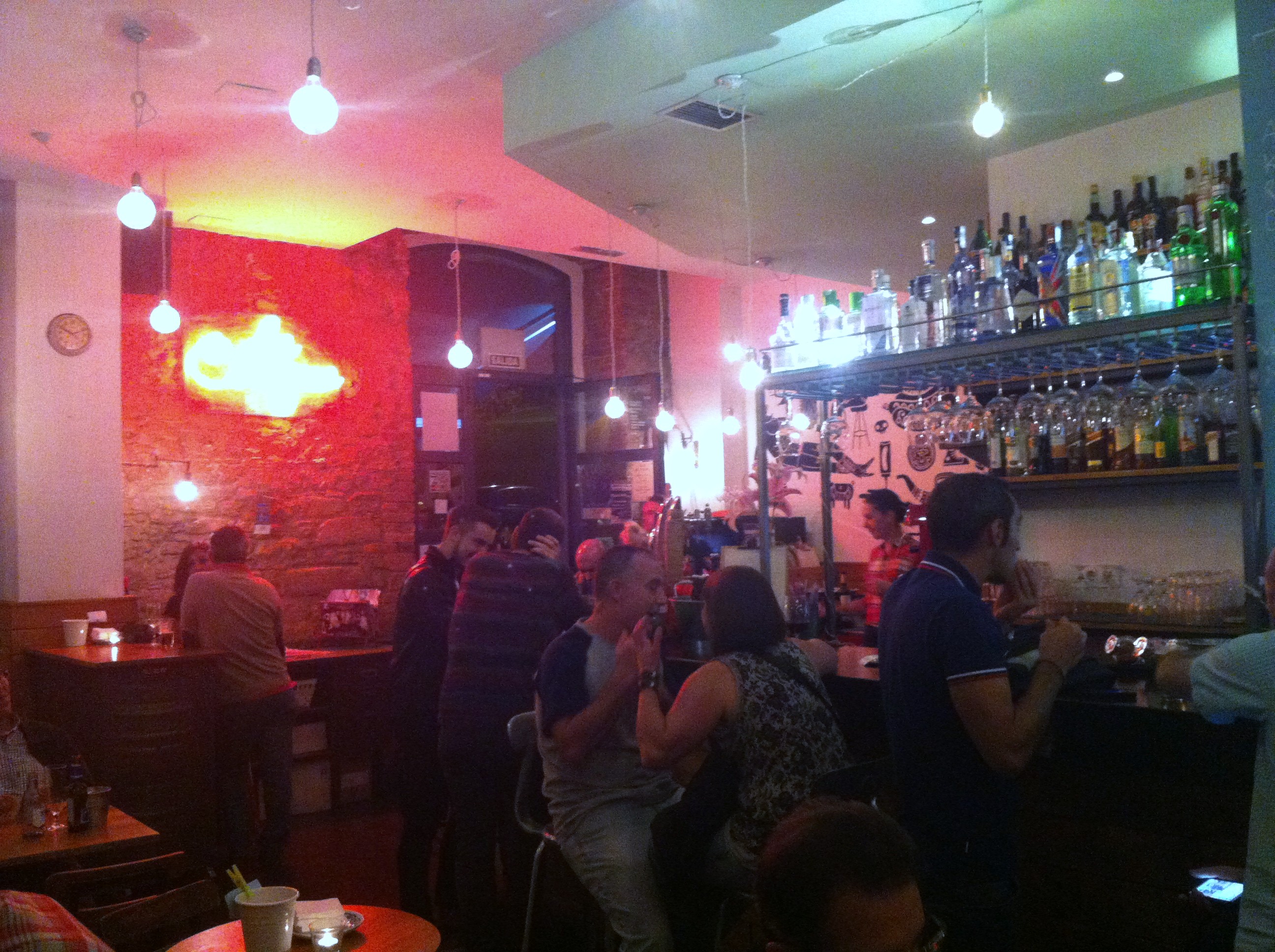 Aunque he pasado del Iphone 4 al 6 os pido perdón por las fotos, es imposible hacerlo mejor con la poca luz que hay en el local, resulta muy intimo pero para la fotografía es como si estuviésemos en el cuarto oscuro revelando.