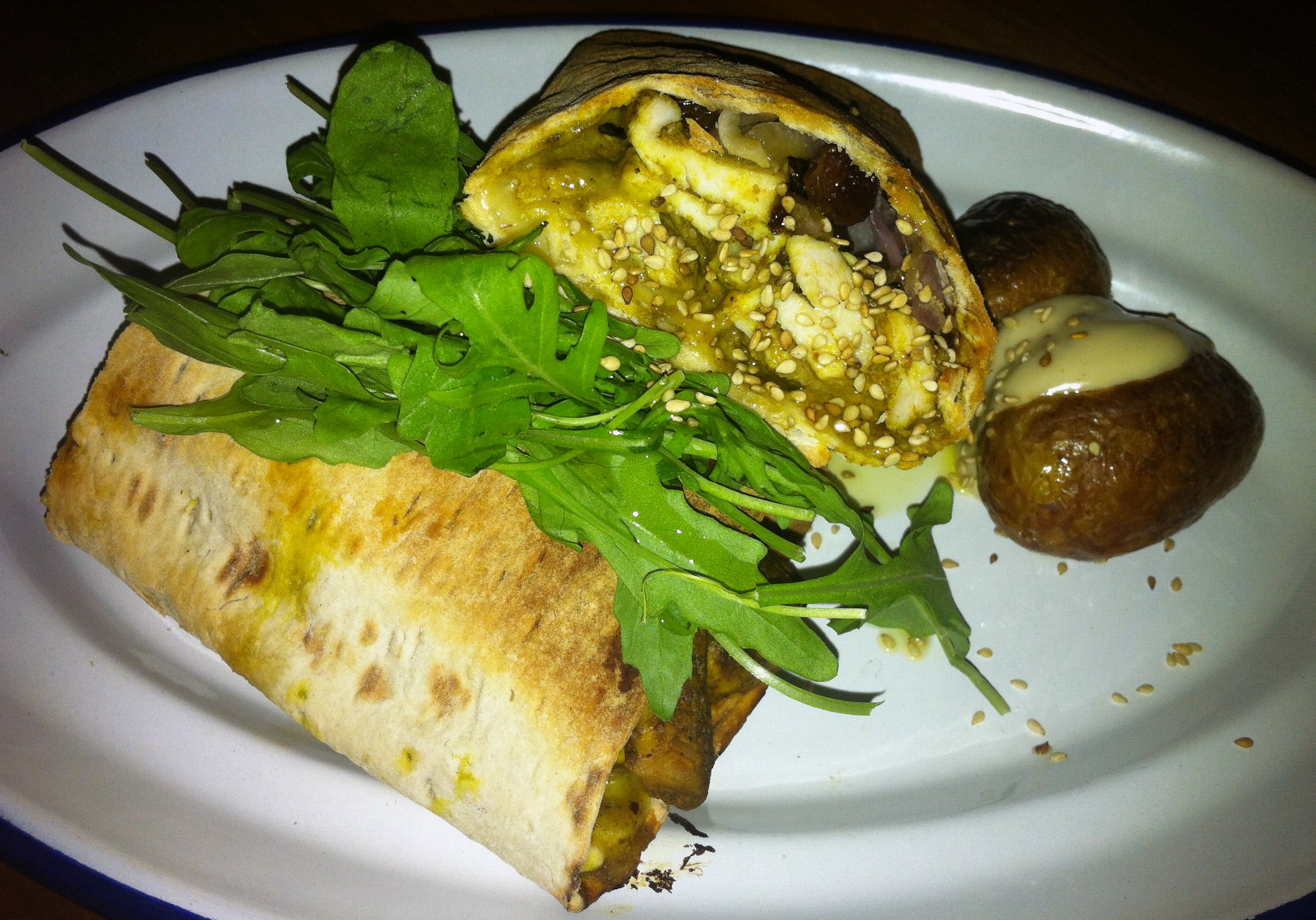 Fardo de pitu al curry, piñones y pasas