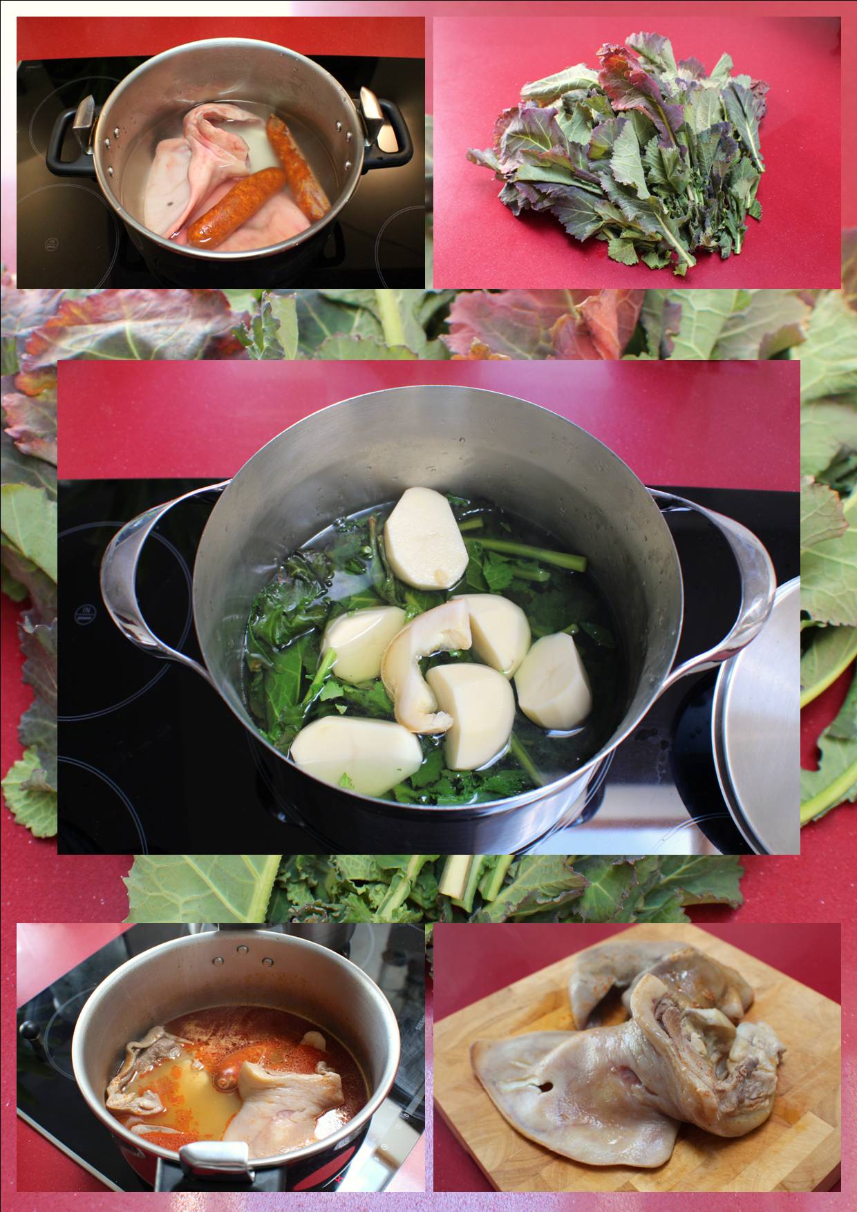 En mi caso aproveché e hice los dos manojos. Reservada una parte con las patatas, el resto lo trasvasé con el caldo a la pota de cocción de la oreja, morro y chorizo. Ambos caldos se mezclaron, de manera que nos servirá de base para un pote gallego tradicional, al que tan solo deberemos añadir unas alubias y patata.