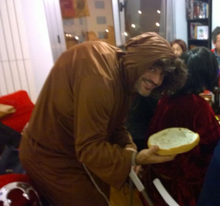 Como si de la fiesta medieval de Los Exconxurados se tratase pensaron en servir la comida en hogazas de pan a modo de plato. Hasta ahí todo correcto pero ¿con qué viandas llenarlos?, los caballeros tras curtirse en mil batallas necesitaban ver saciados sus maltrechos estómagos.