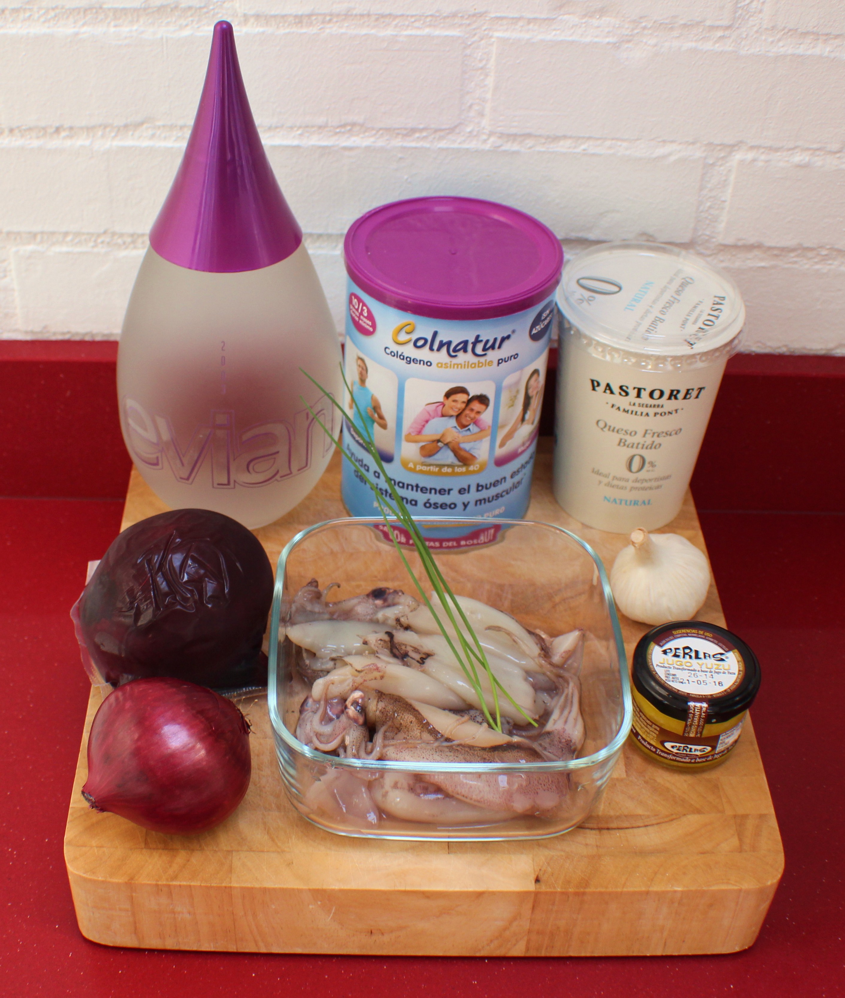 La base es una crema de remolacha en la que no he utilizado ni patata ni nata, tan solo un pochado de ajo, cebolla morada y remolacha.