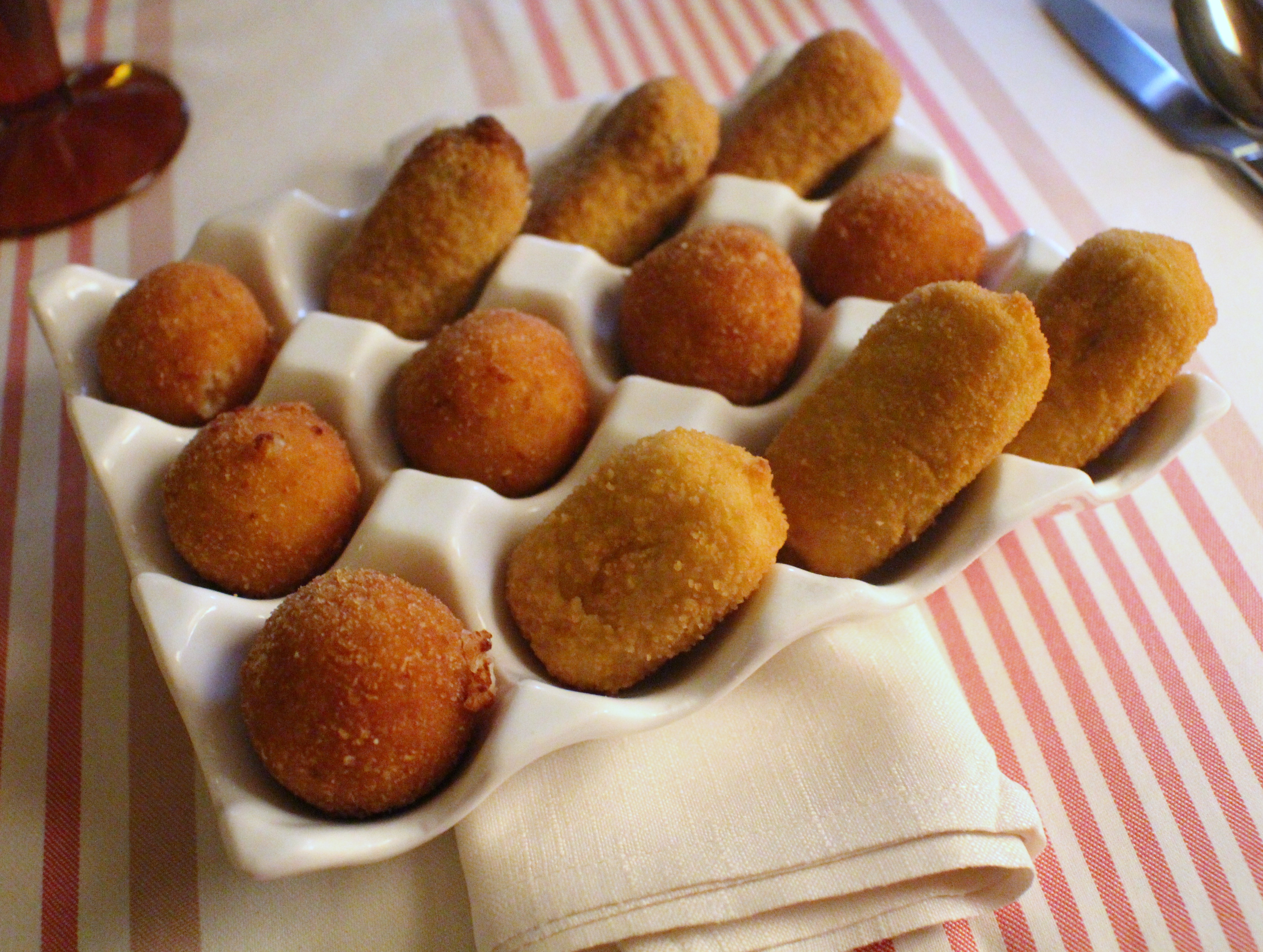 Comenzamos con unas croquetas variadas de jamón, boletus y manzana.